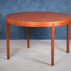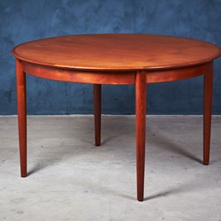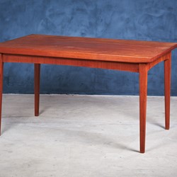 Dining table in teak with dutch leaves, made in Denmark in the 60s. The table is in good condition with very few signs of wear as the previous owners has used table cloth all its living time. Very beautiful table with good space for your family as it can be extended up to 237cm in total which make space for 10-12 people.