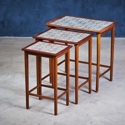 Danish Teak, Beech & Ceramic Tile Nesting Tables, 1960s