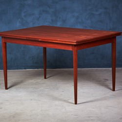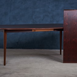 Dining table designed by Kai Kristiansen. The table is made out of rosewood and comes with two extension plates.