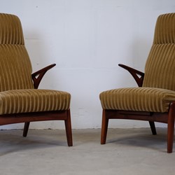 The tilting backrest and small armrests provide supreme comfort and a stunning silhouette. This chair must be one of Kristiansen's most famous designs. The comfort in these chairs are absolutely amazing.
