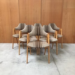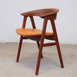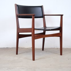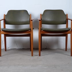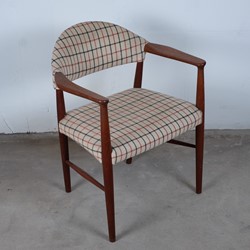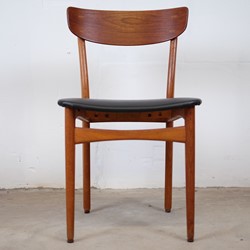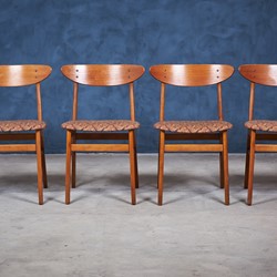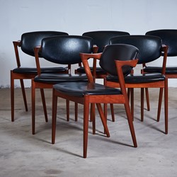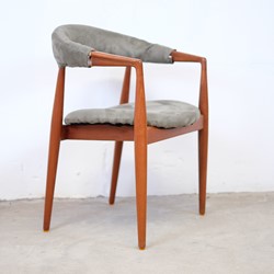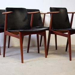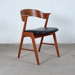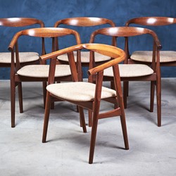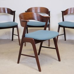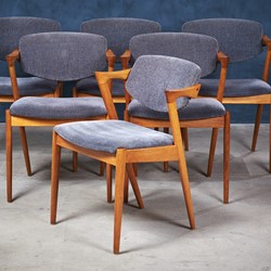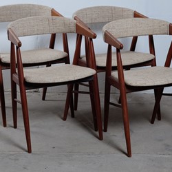 This stunning set of four dining chairs was designed by Kai Kristiansen for Korup Stolefabrik. The chairs feature a comfortable curved back with armrests and the back of the chair are in teak and the frame are in solid oak. One of our personal favourites by Kristiansen.