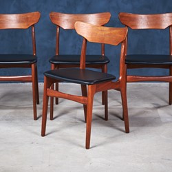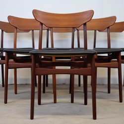 Stunning midcentury chairs ‘Model 31’ in teak by the Danish designer Kai Kristiansen for Schou Møbelfabrik, in 1956 and produced in the 1960s.