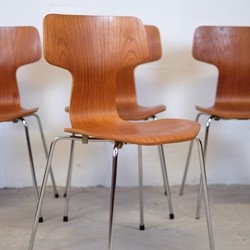 Seldom seen chair of bent white lacquered teak? plywood chairs from the 1960s. The children's model of the 'Hammer/T-chair' by Arne Jacobsen for Fritz Hansen.