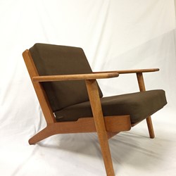 This Mid-Century armchair, was designed during the 1950s by Hans J. Wegner and manufactured in Denmark by GETAMA.