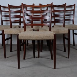 Set of 6 rosewood dining chairs witg grey/beige wool.