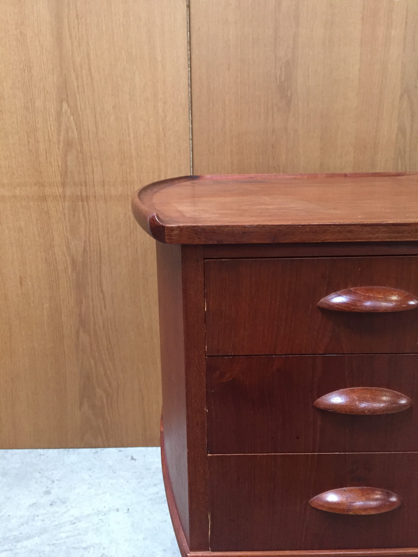 Free-standing teak desk with raised edge