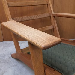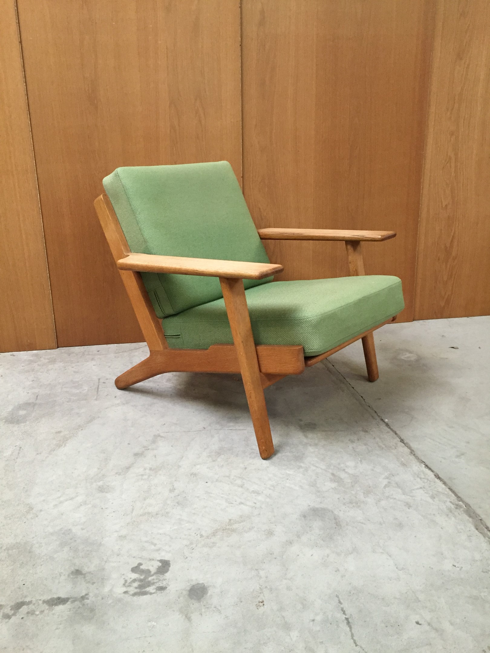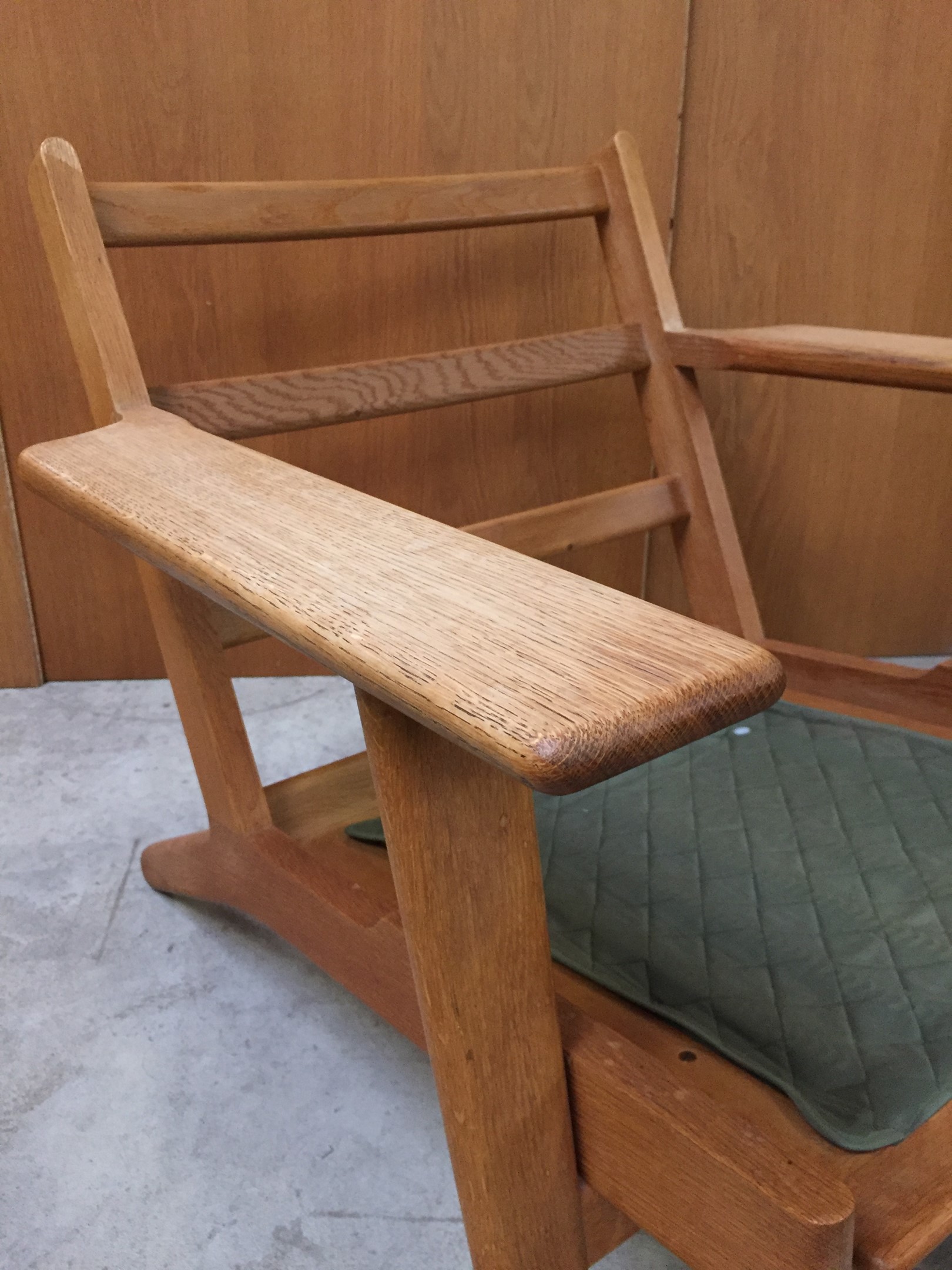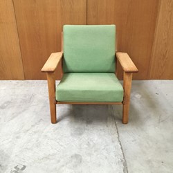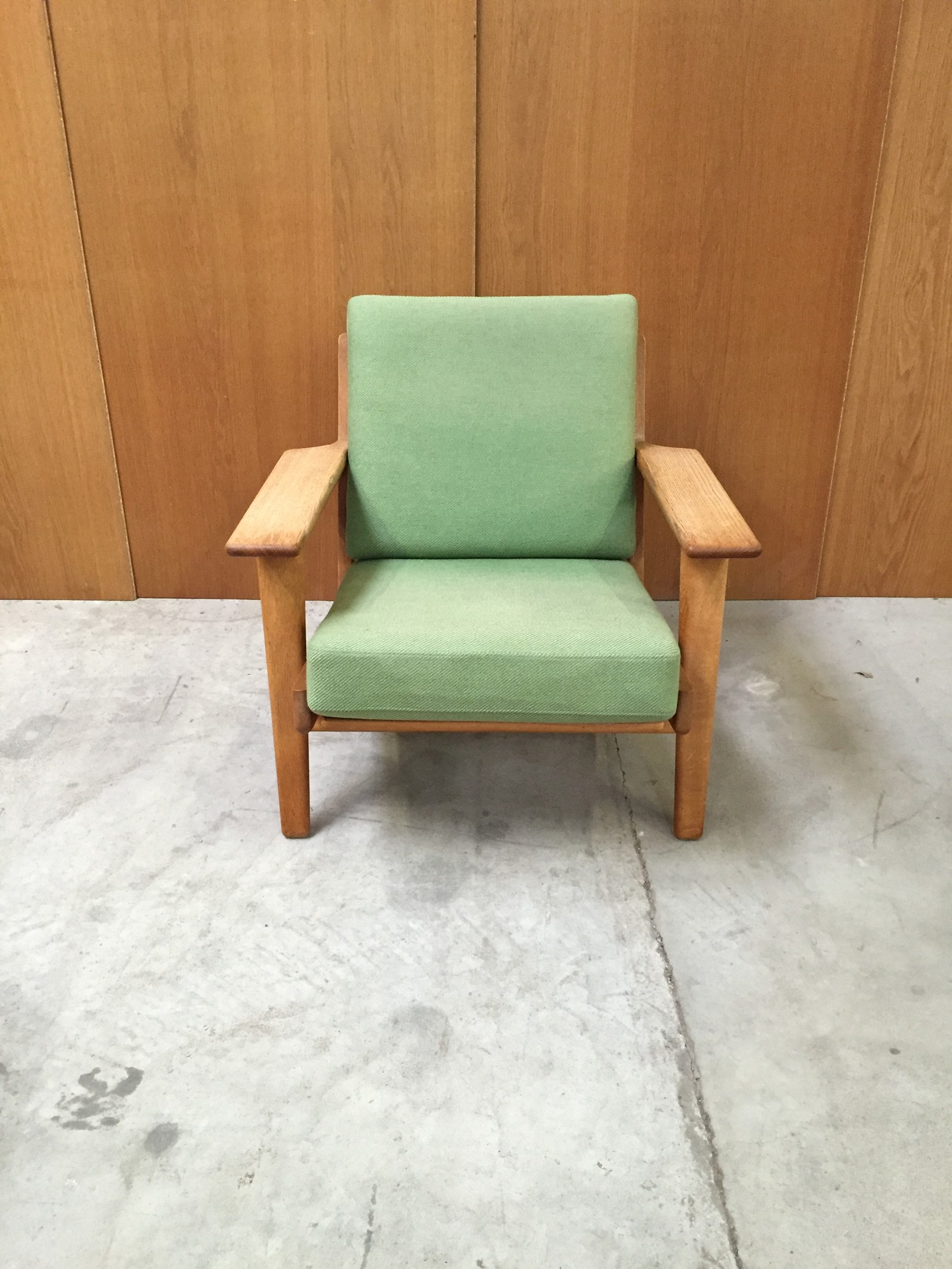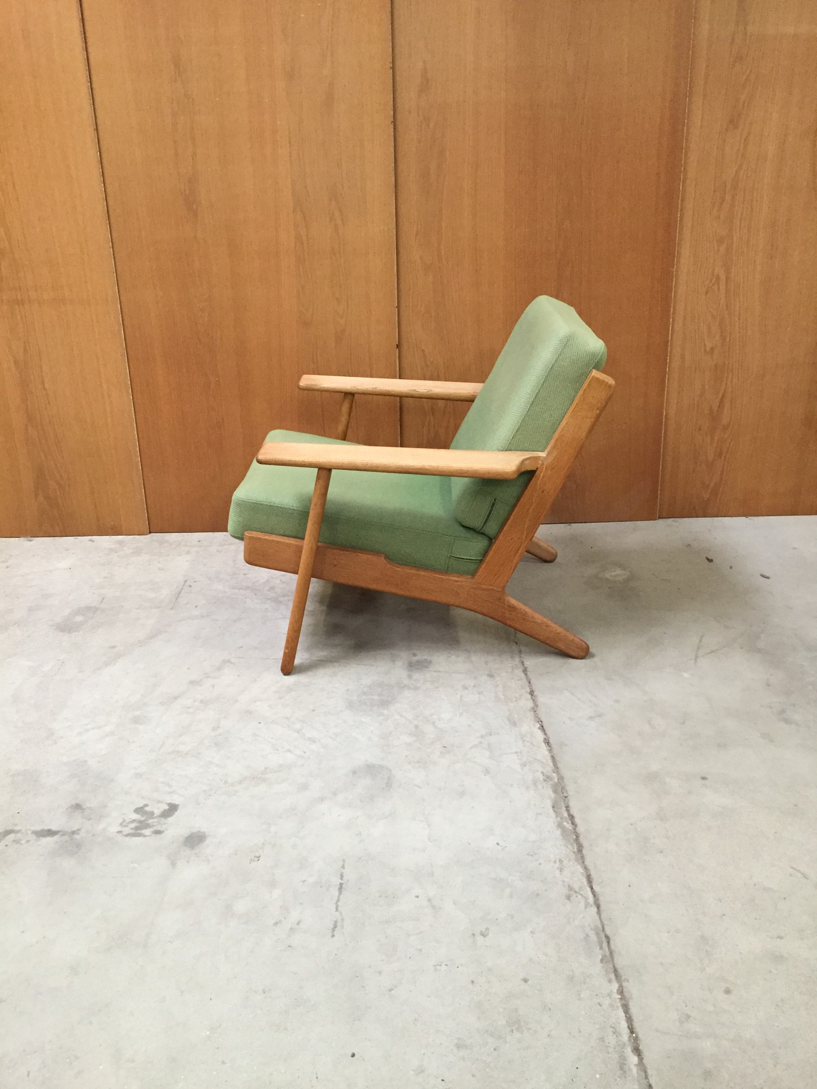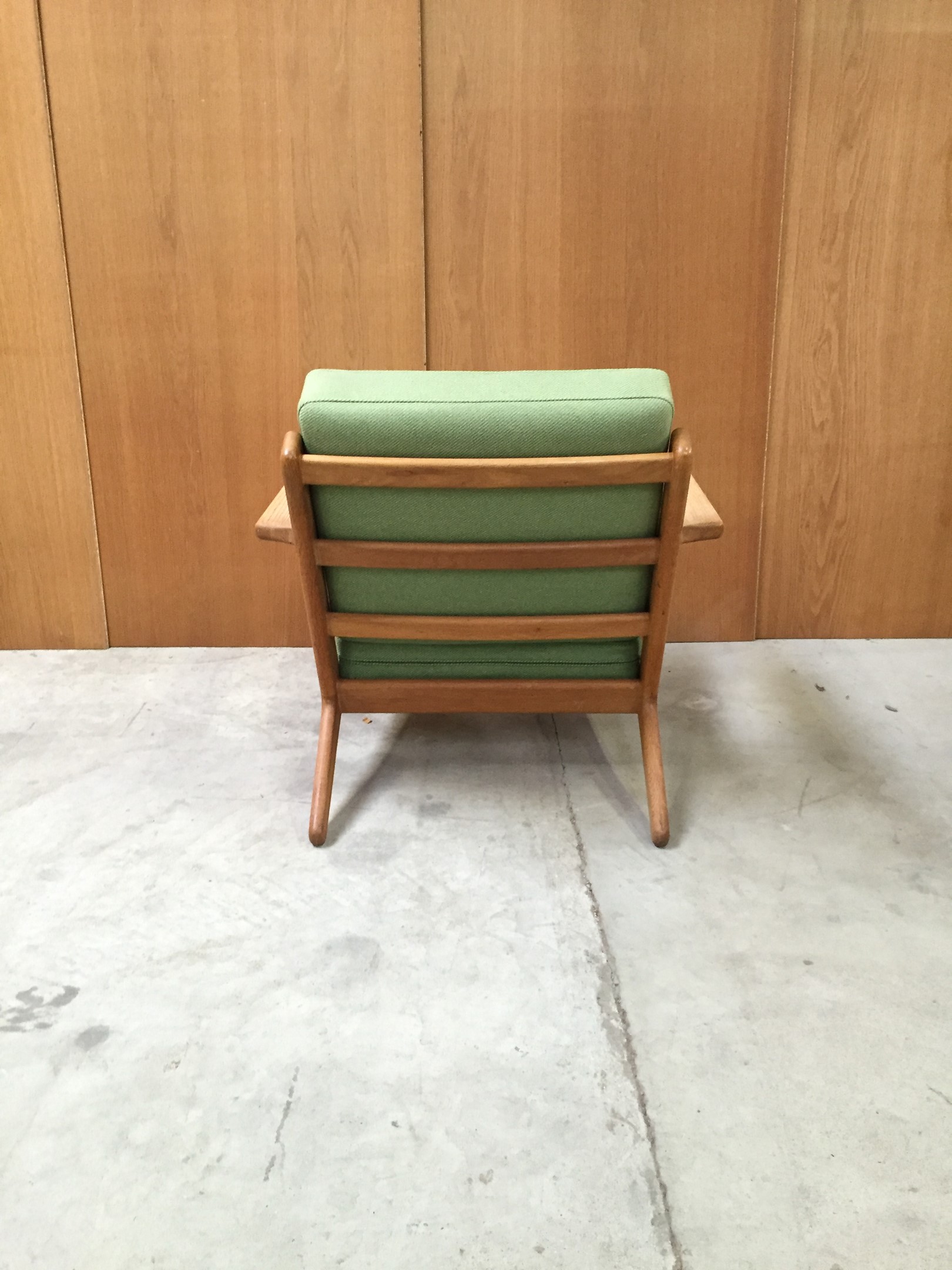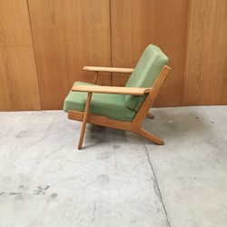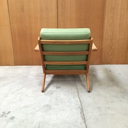 Arm chair in Oak designed by Hans J. Wegner for Getama. The arm chair is in good condition with no stains on the fabric.