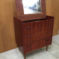 3-drawer dresser chest top drawer slides into a dressing table with adjustable mirror. The mirror has a damage (Foto)