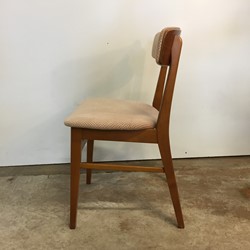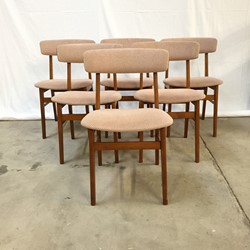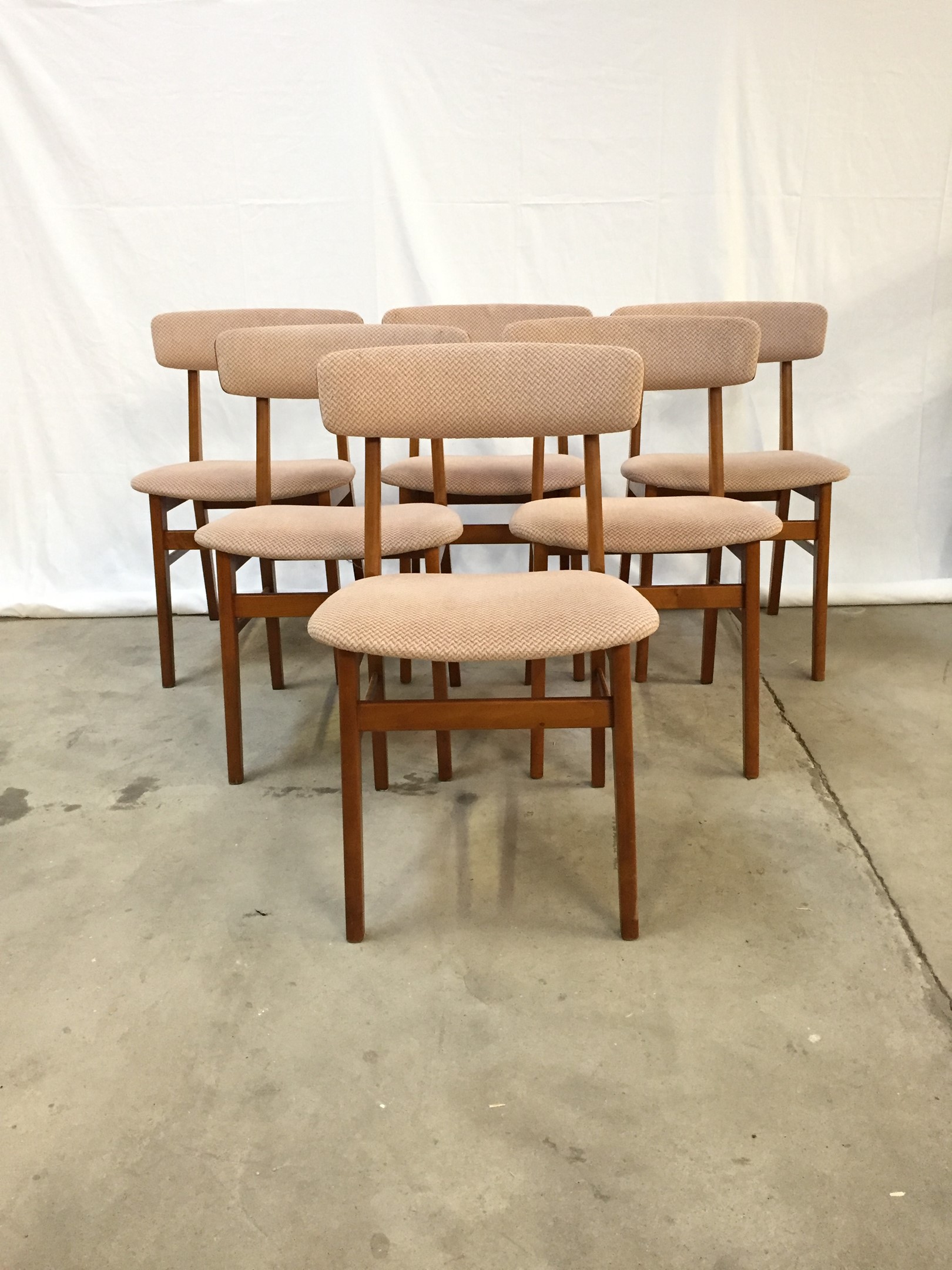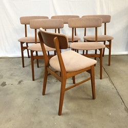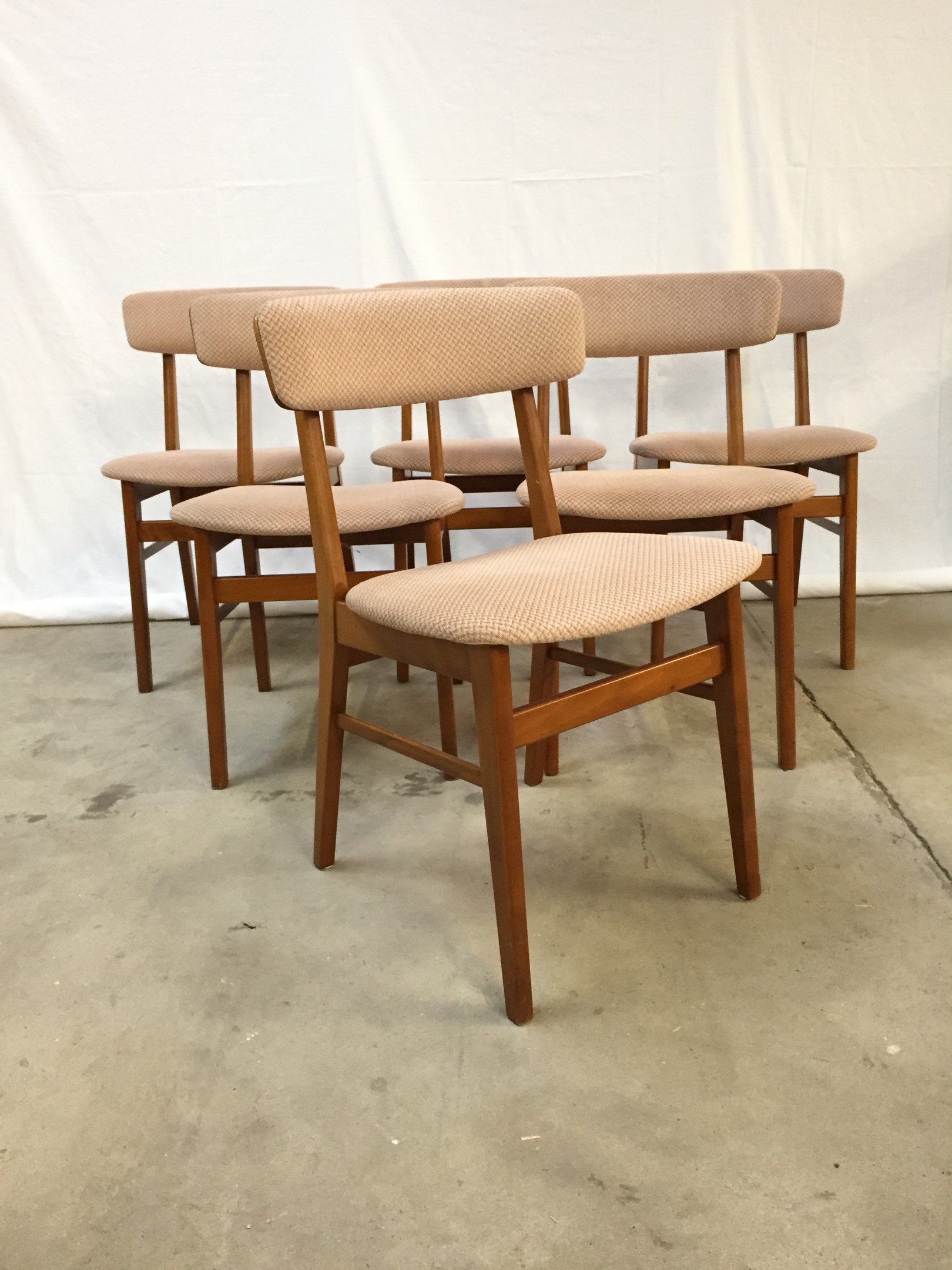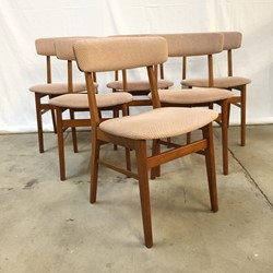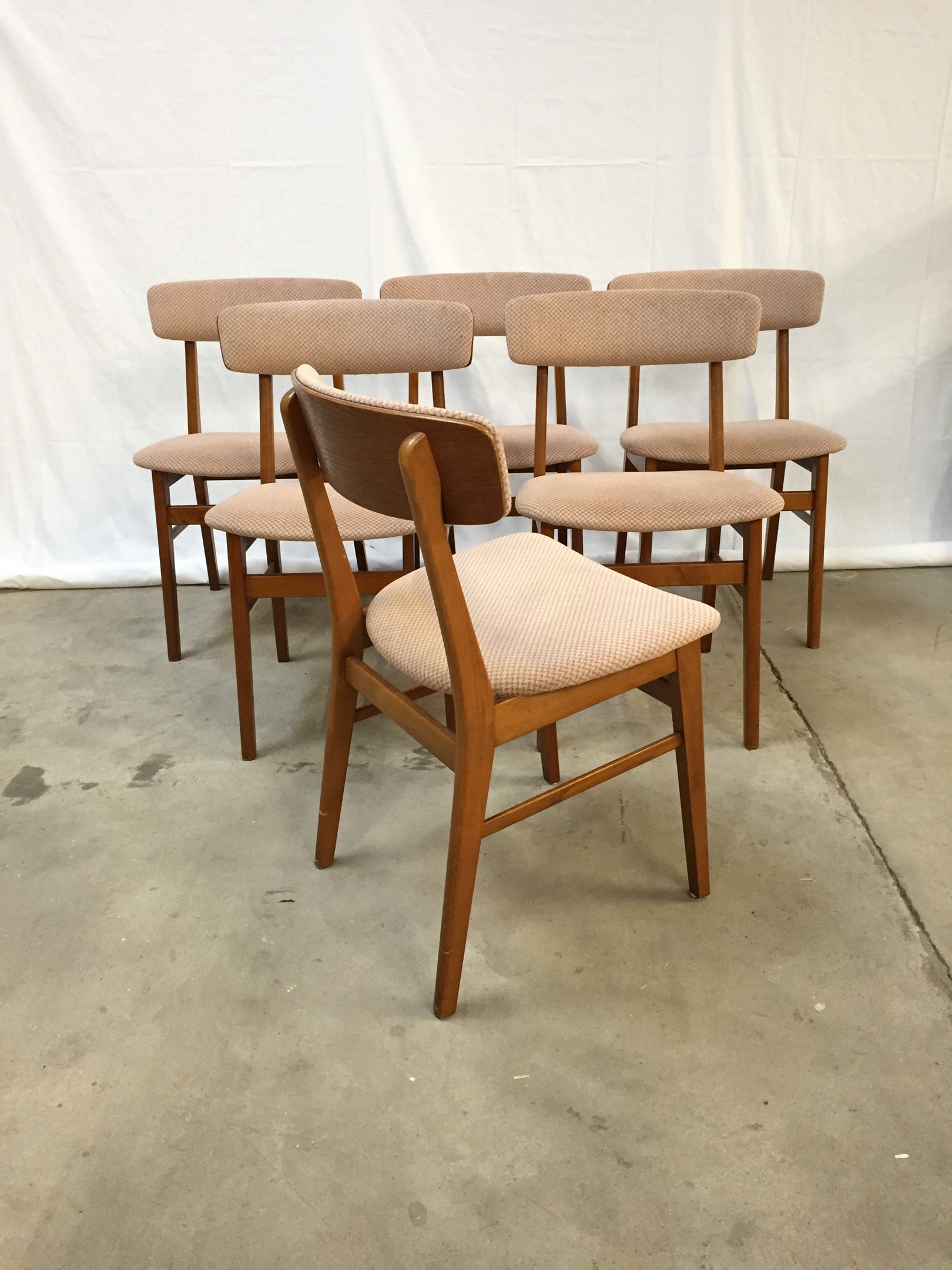 Very comfortable set of six beautiful danish dining chairs in teak with upholserty on back.