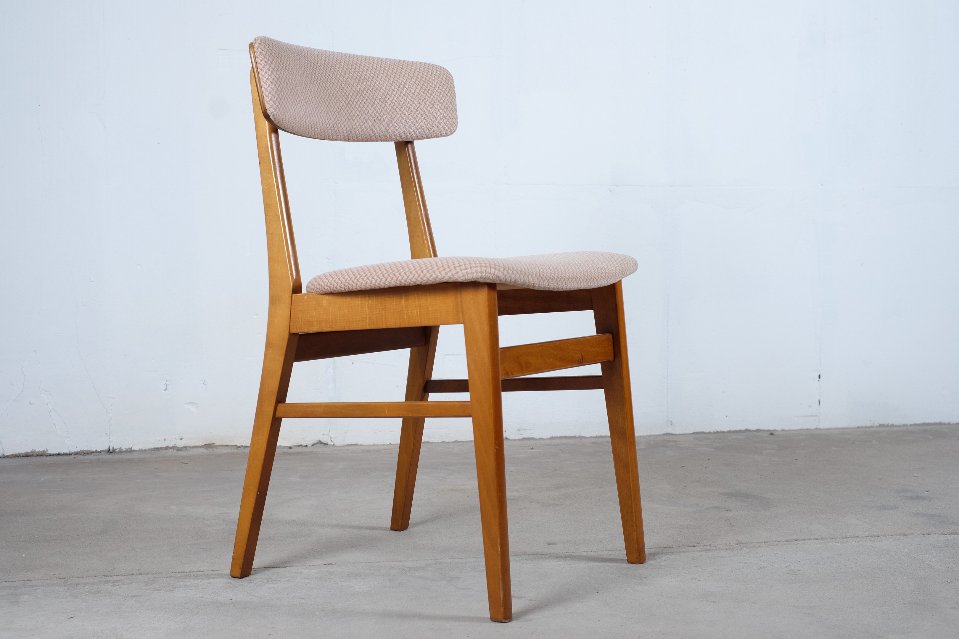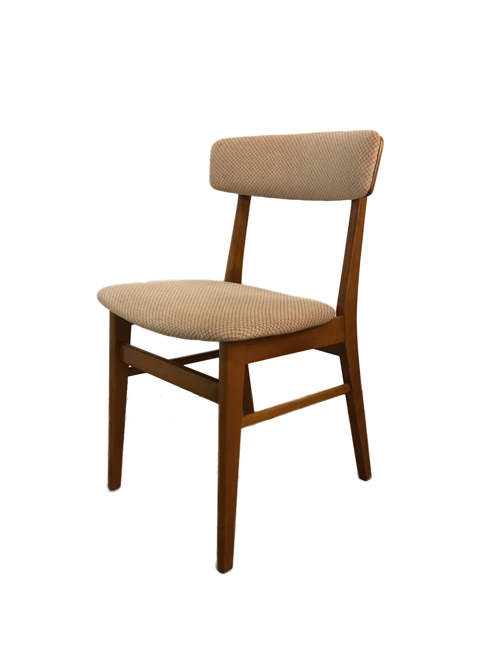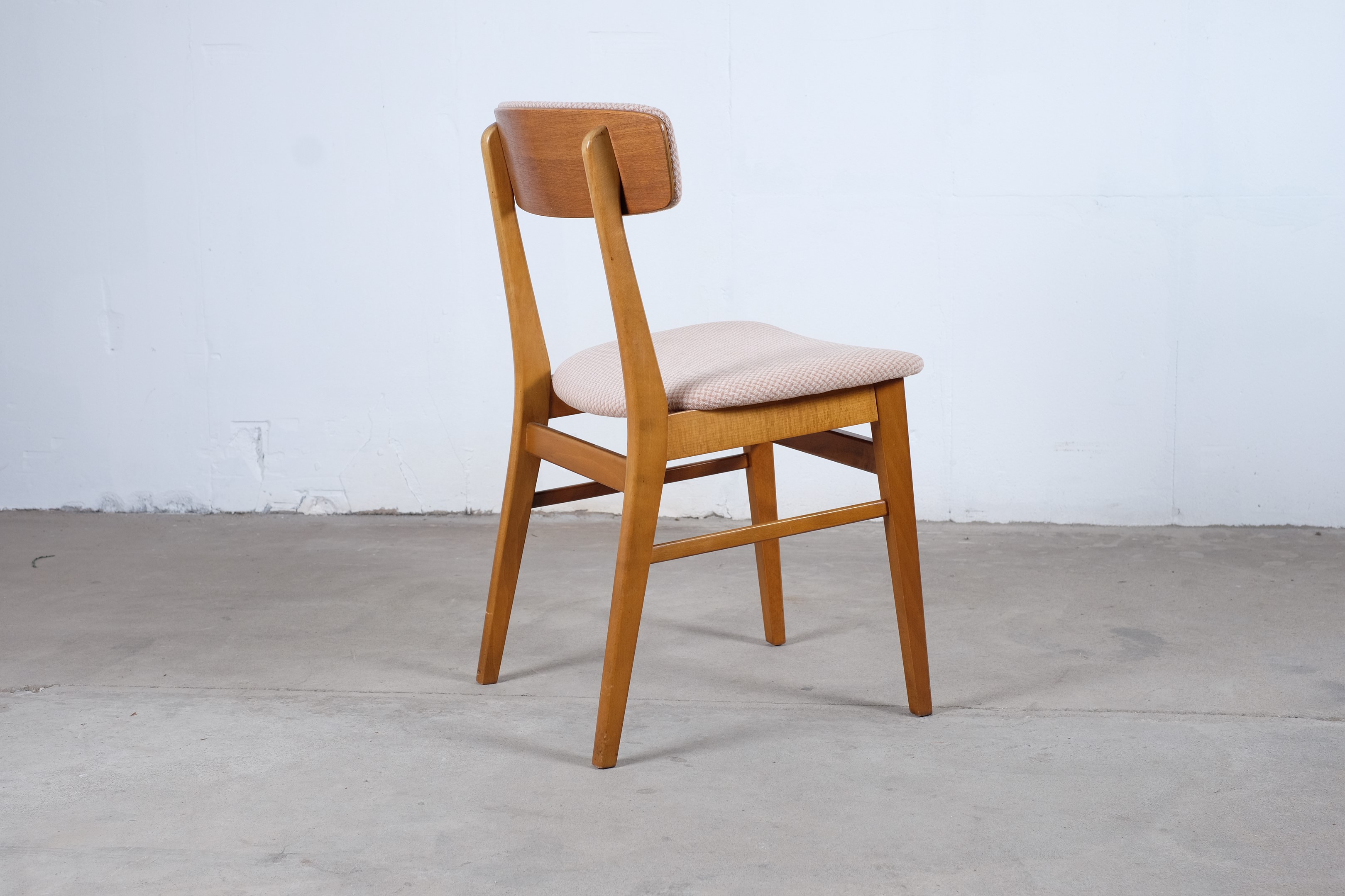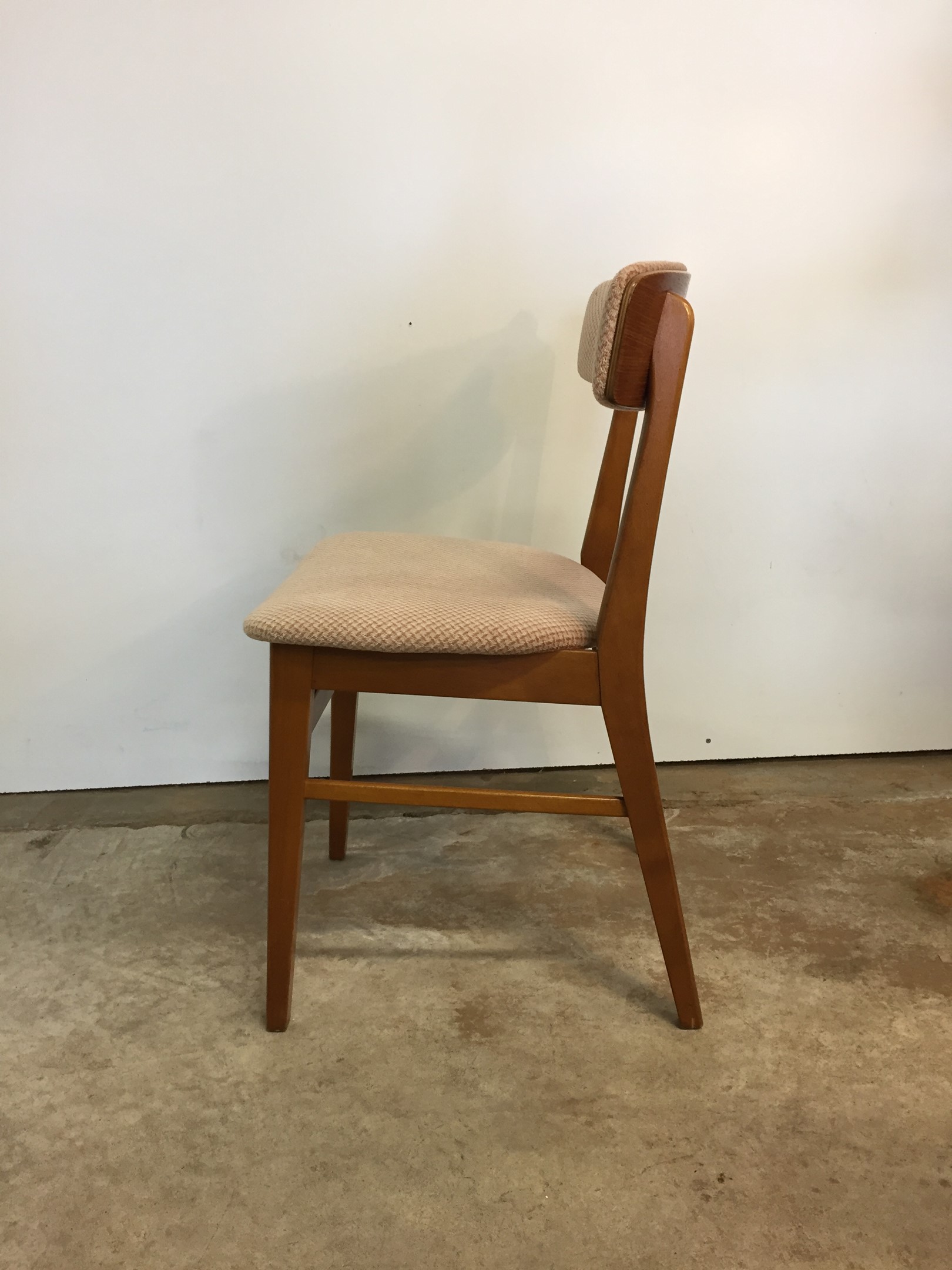 Very comfortable set of six beautiful danish dining chairs in teak with upholserty on back.