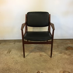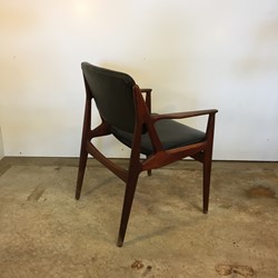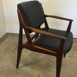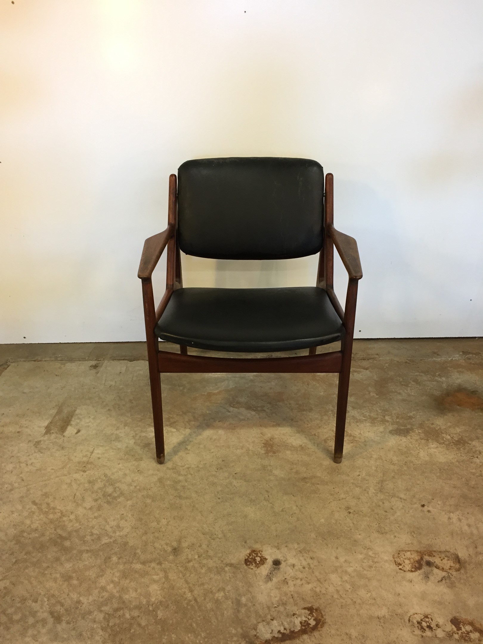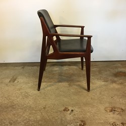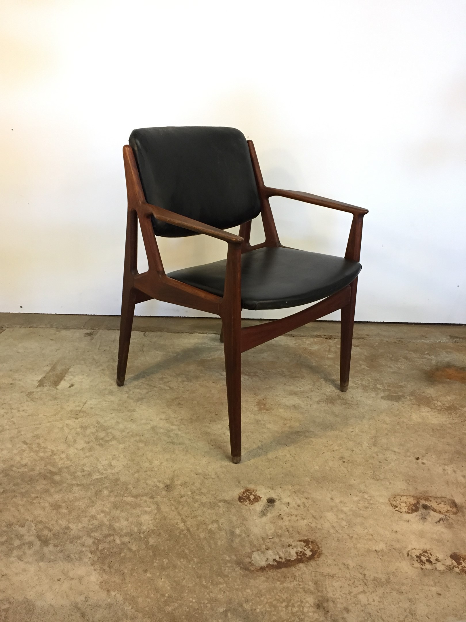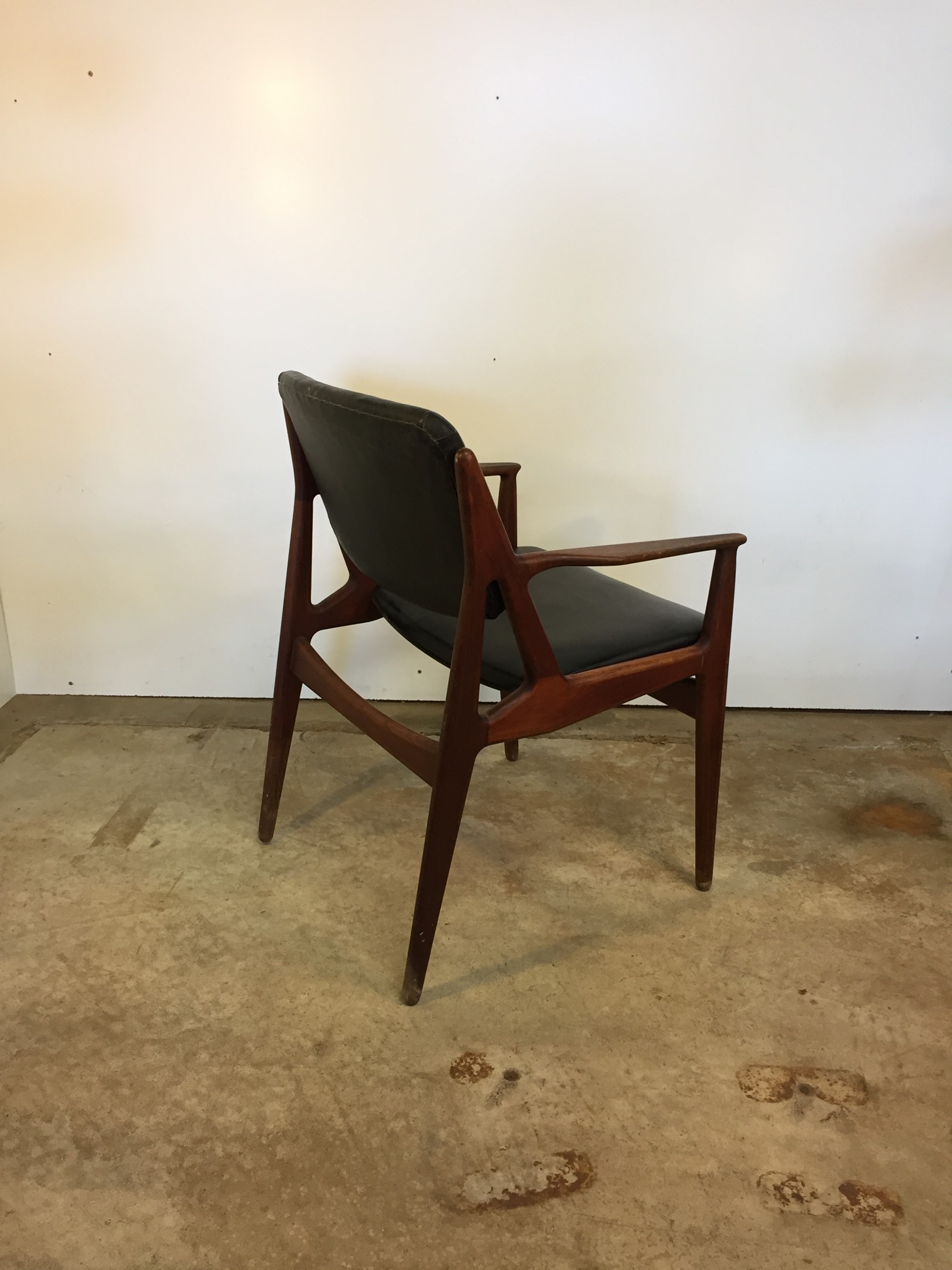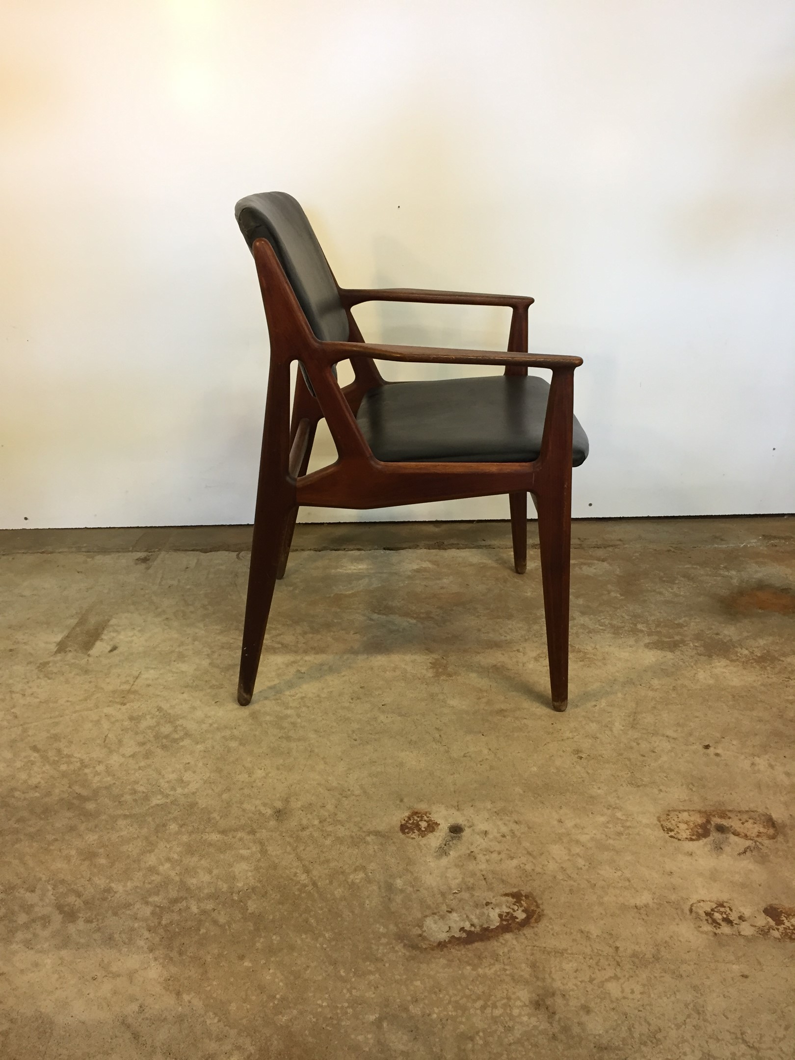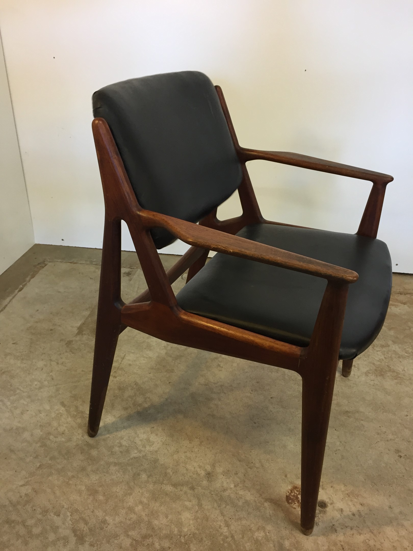 This 'Ellen' armchair was designed by Arne Vodder for VAMO Møbler in Denmark. It features a teak frame with the original leather upholstery.