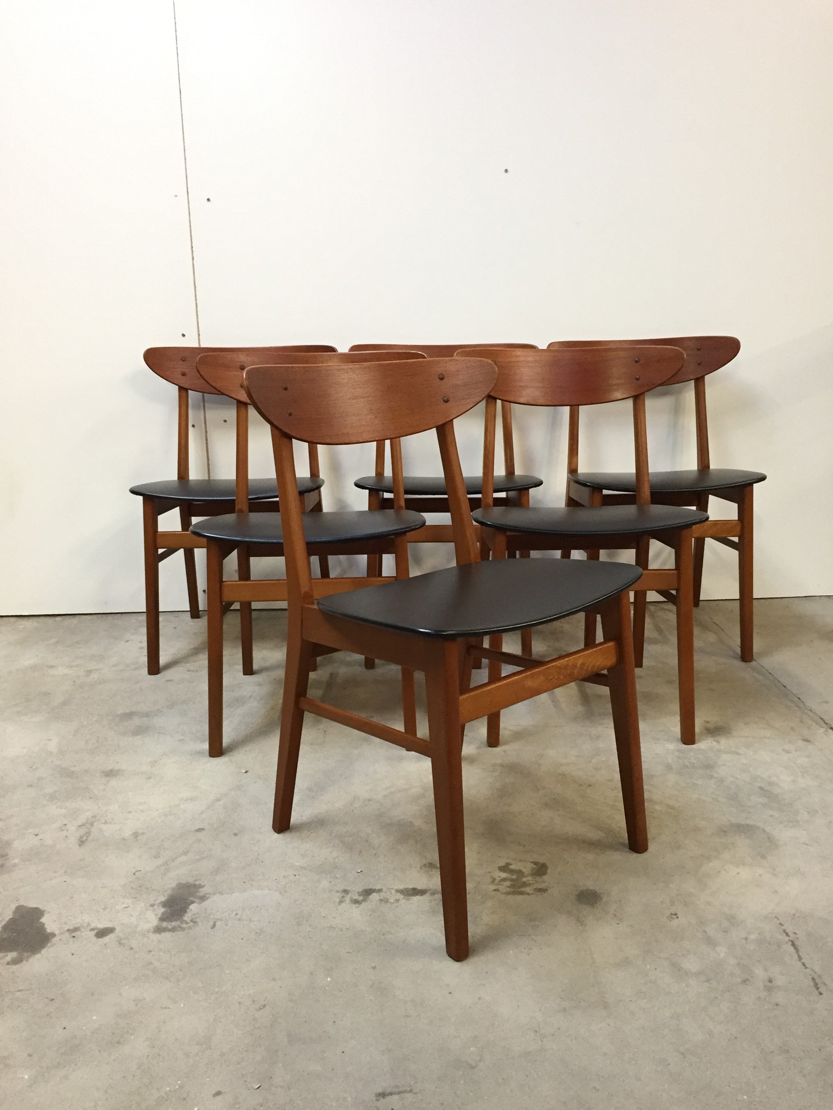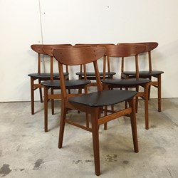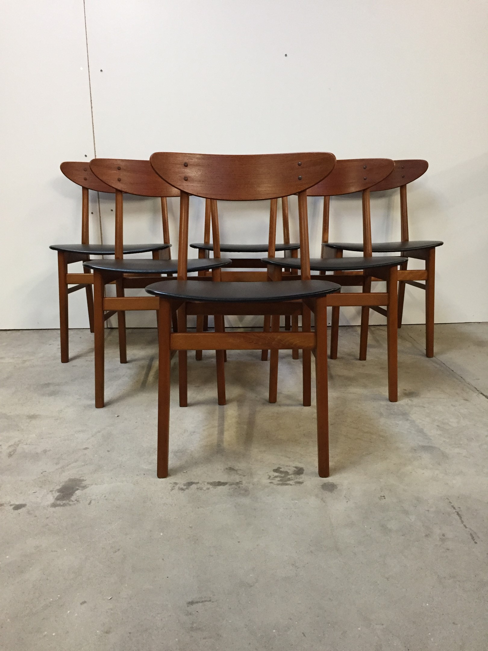 A beautiful Danish set of (6)six teak dining chairs with curved backs - by farstrup mobel fabrik, danish designer.