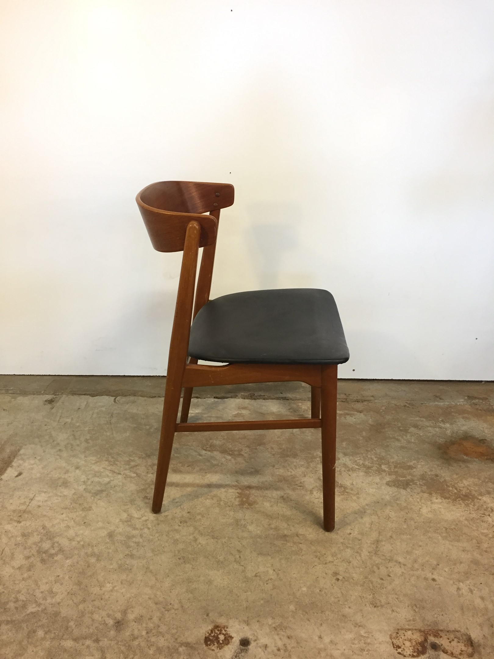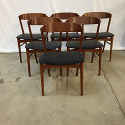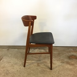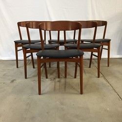 Four Danish dining chairs with a solid beech frames and curved teak backrest.