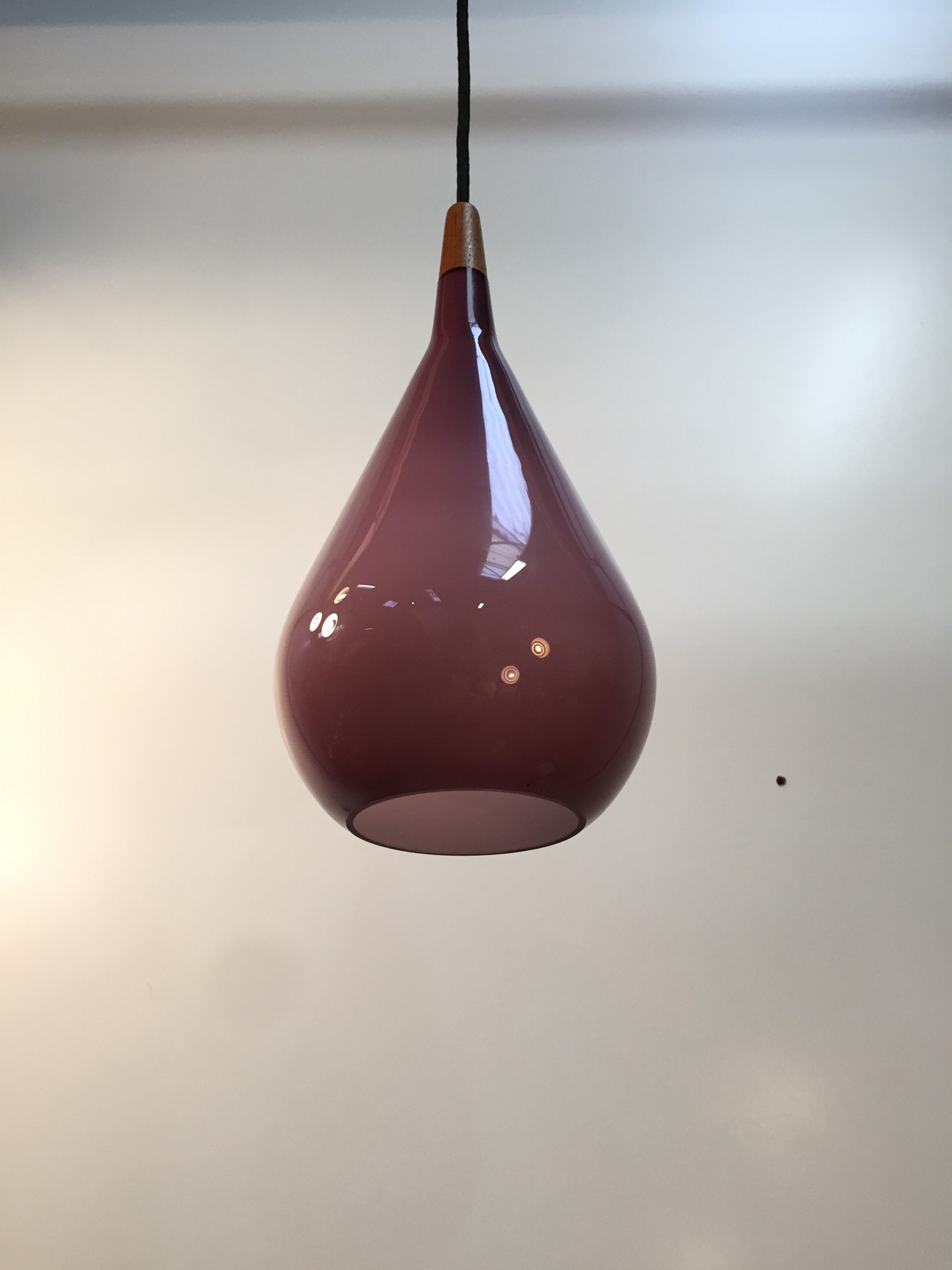 A beautiful handblown 1960s 'wine red' pendant drop light by Holmegaard, circa 1960s.