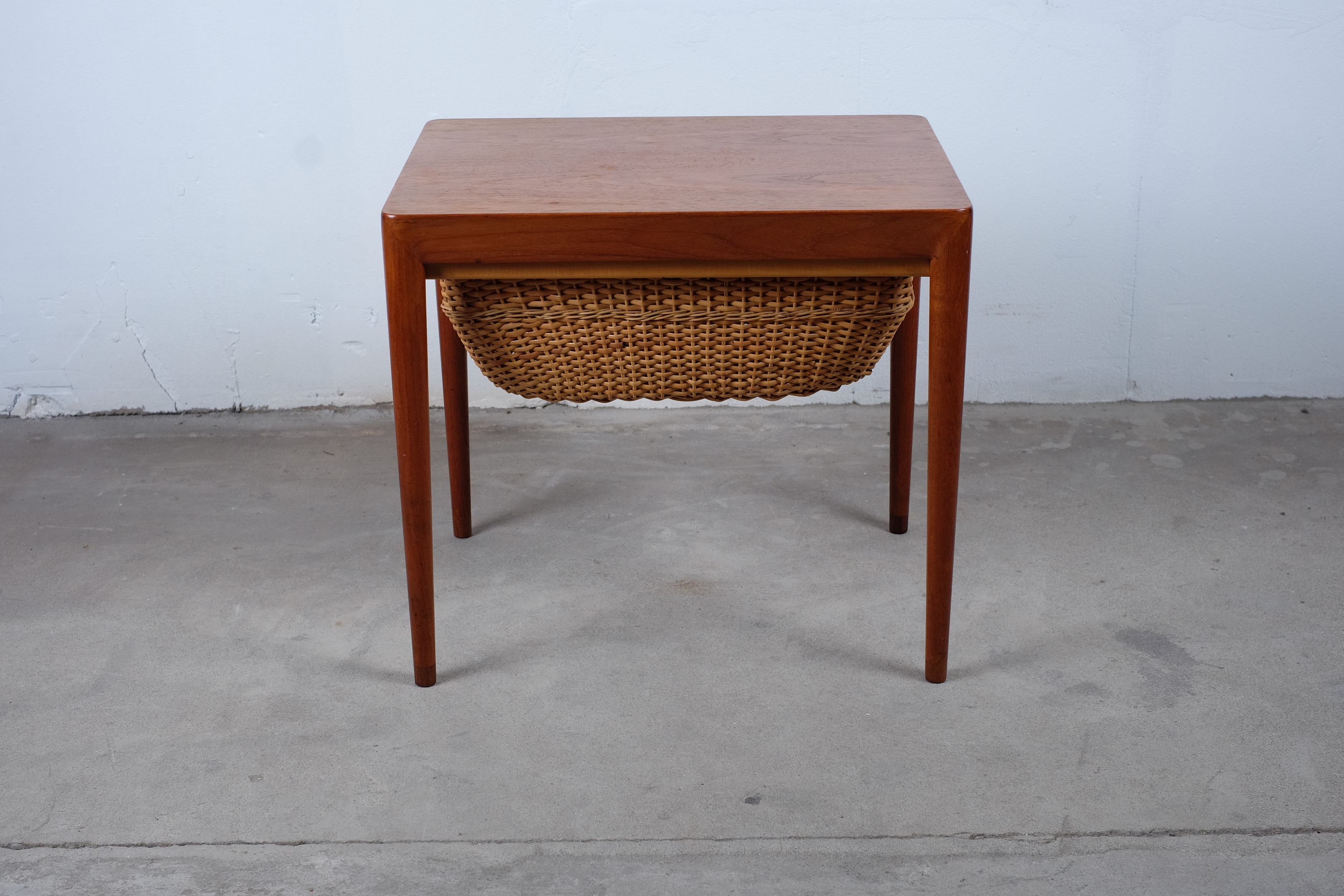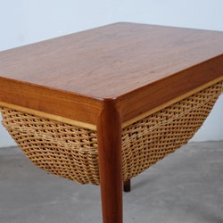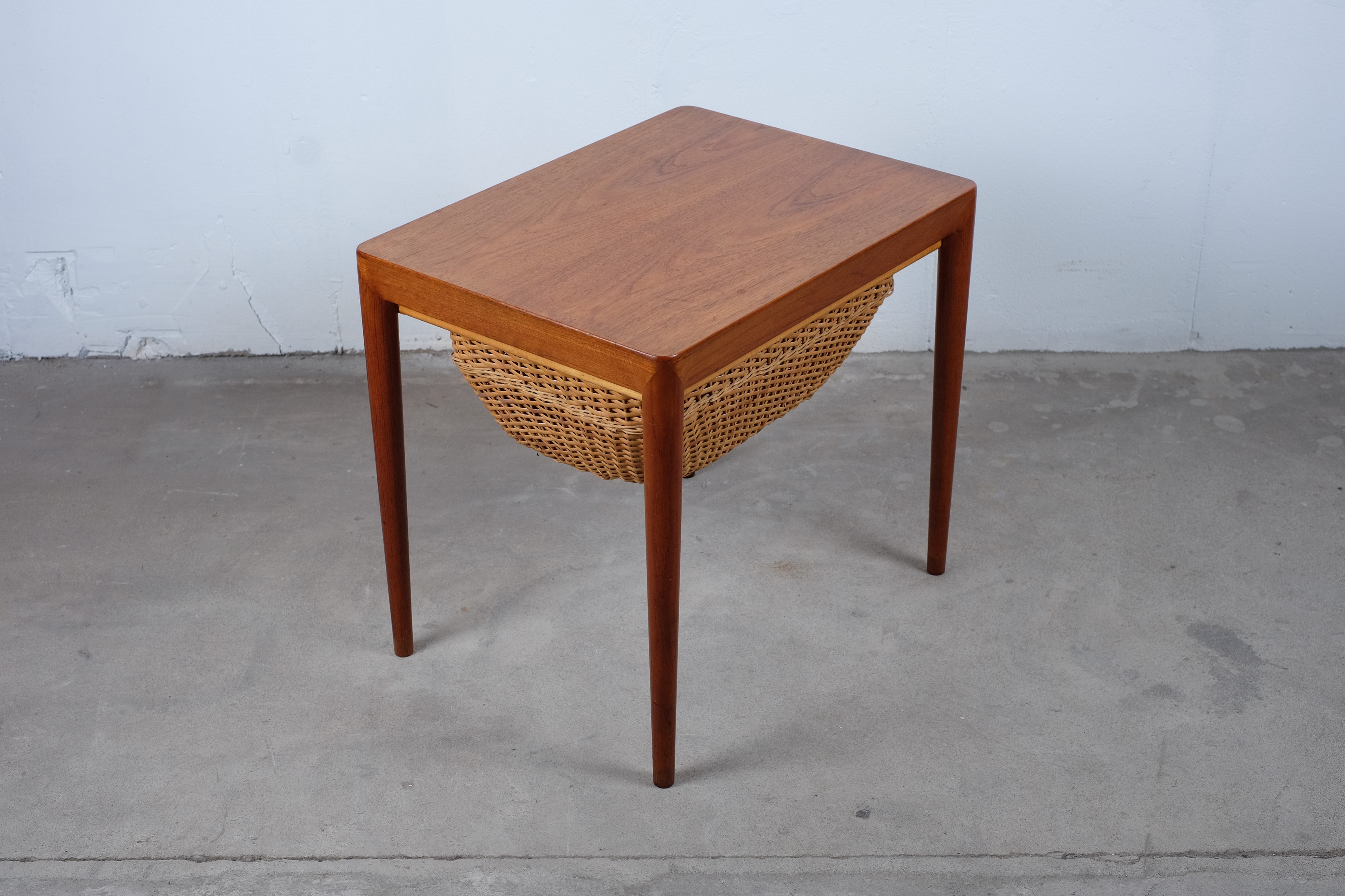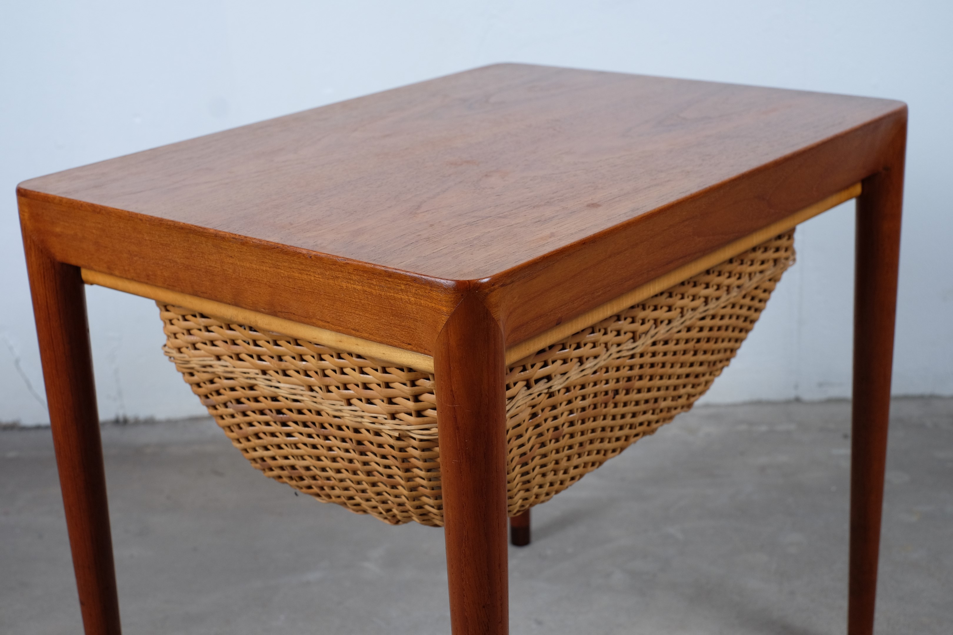 Danish Sewing Table in Teak with Rattan Basket, 1960s