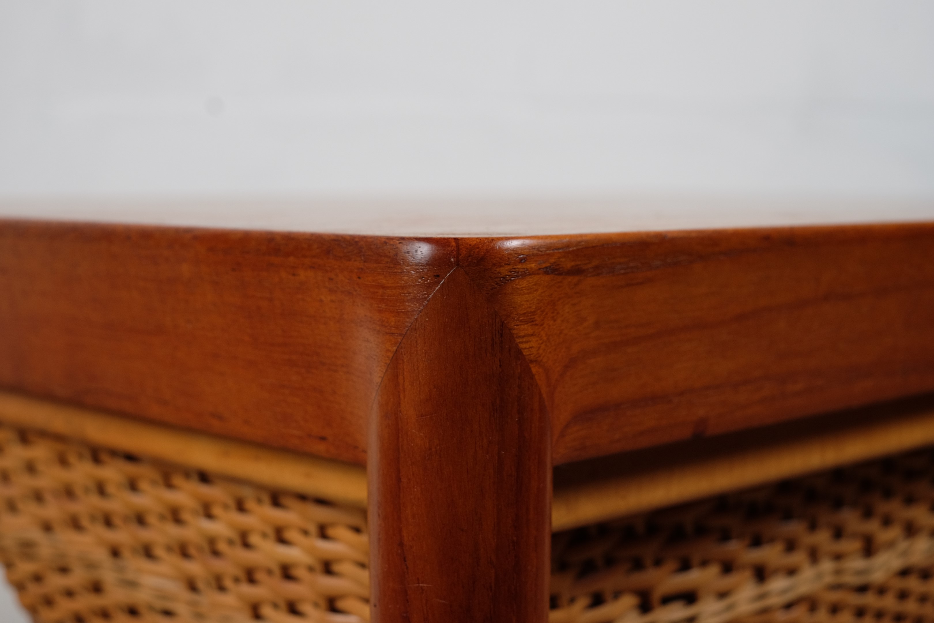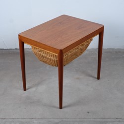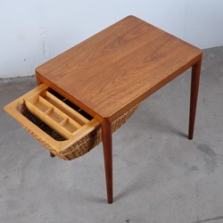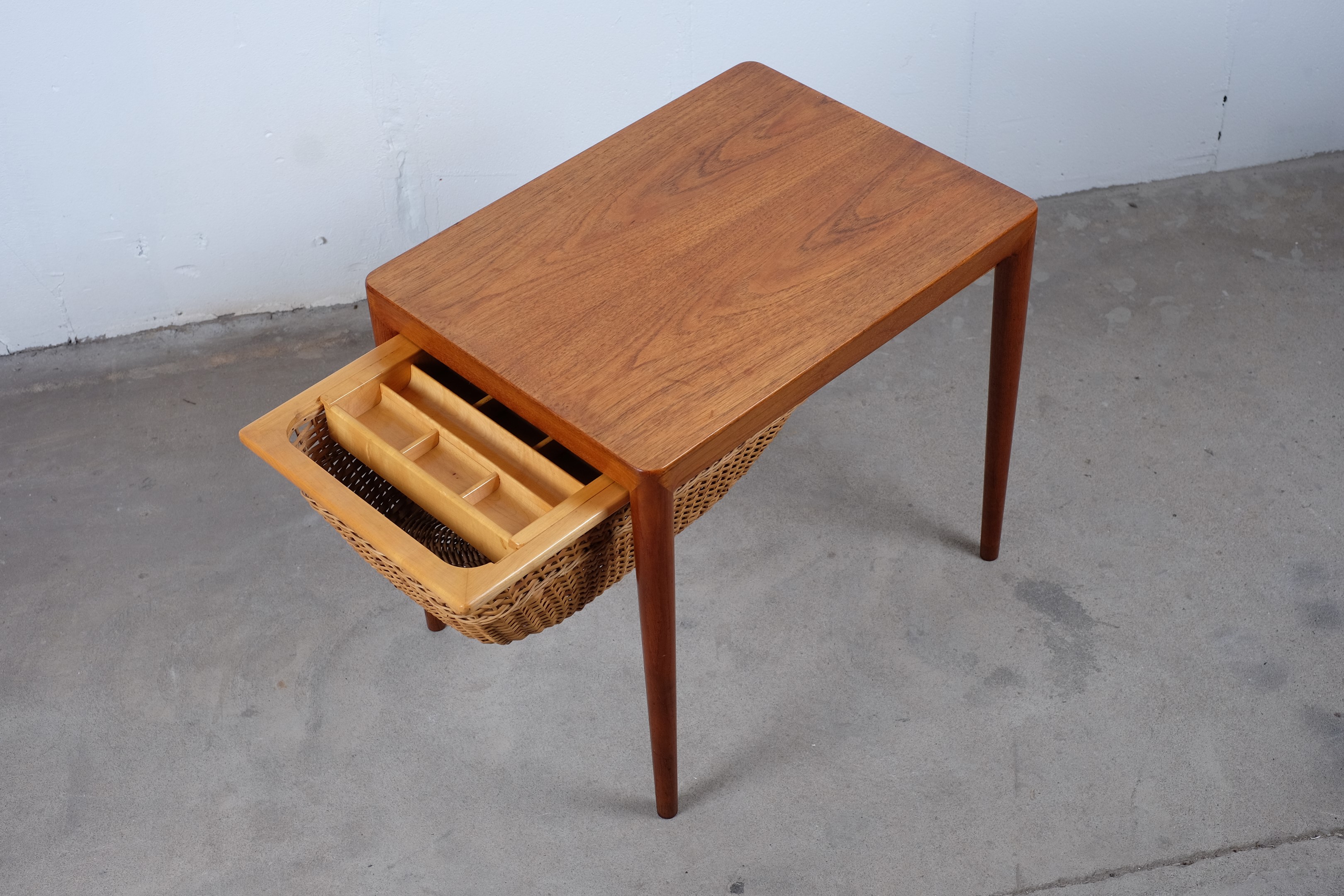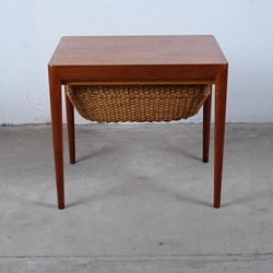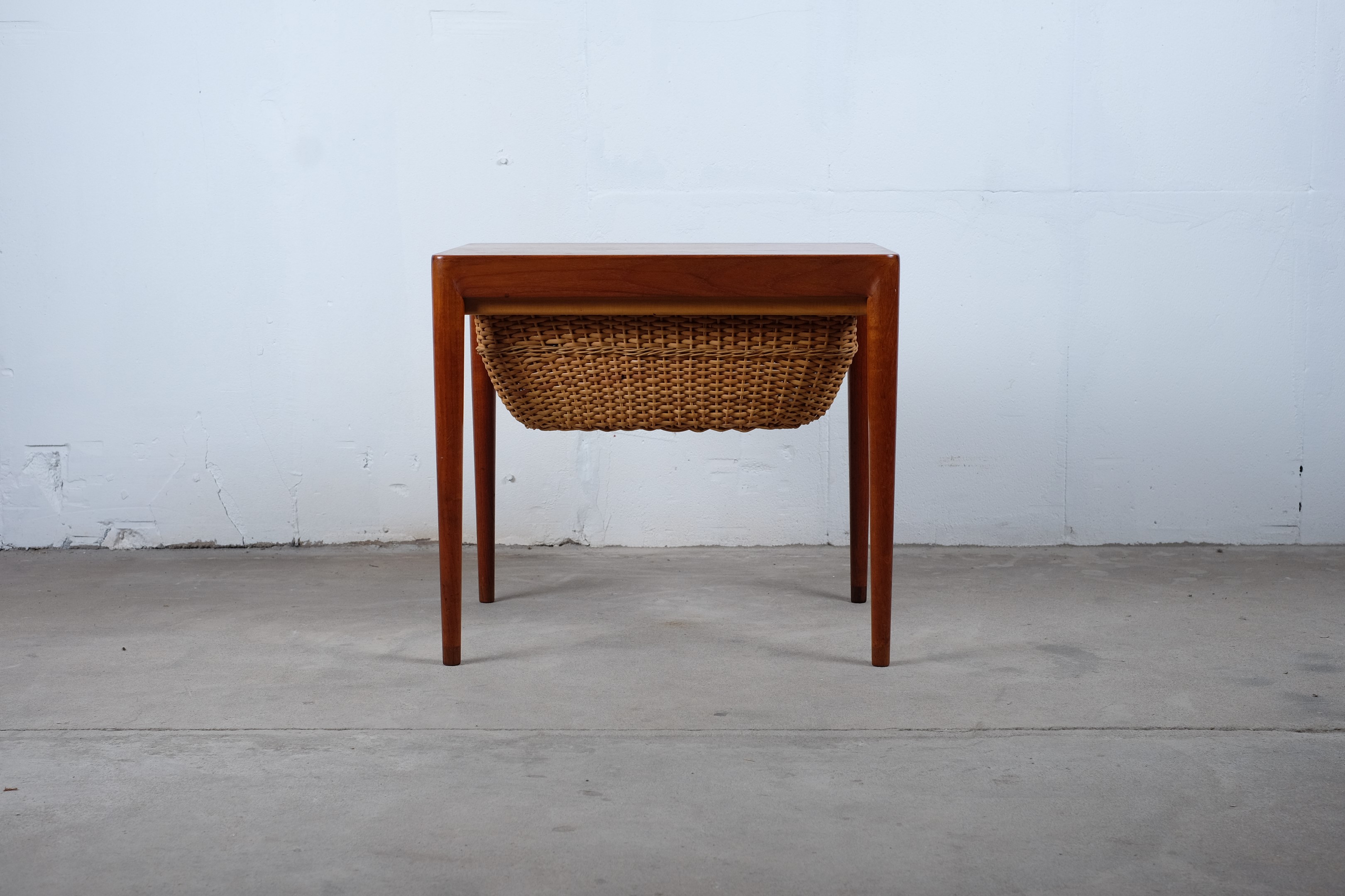 Danish Sewing Table in Teak with Rattan Basket, 1960s
