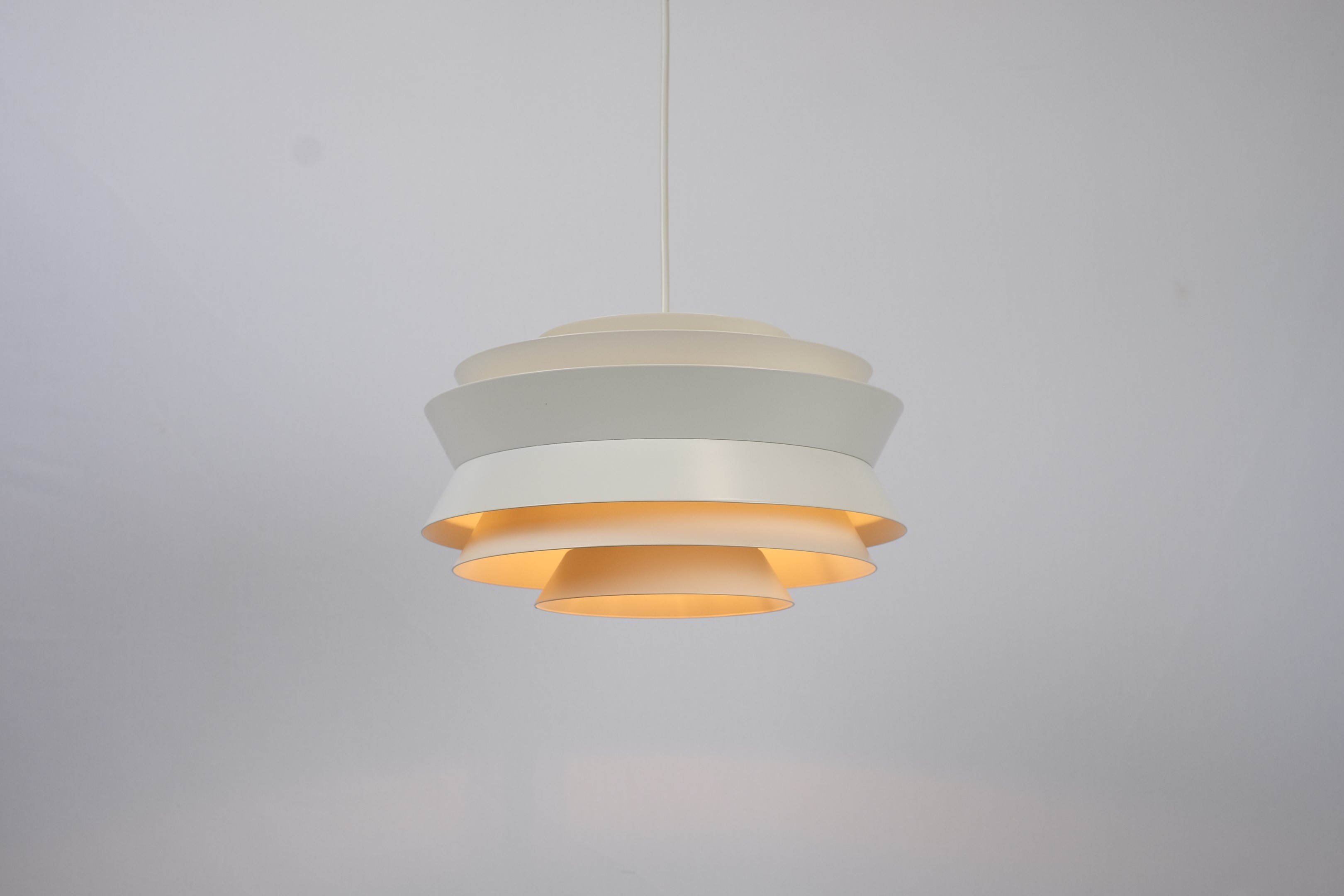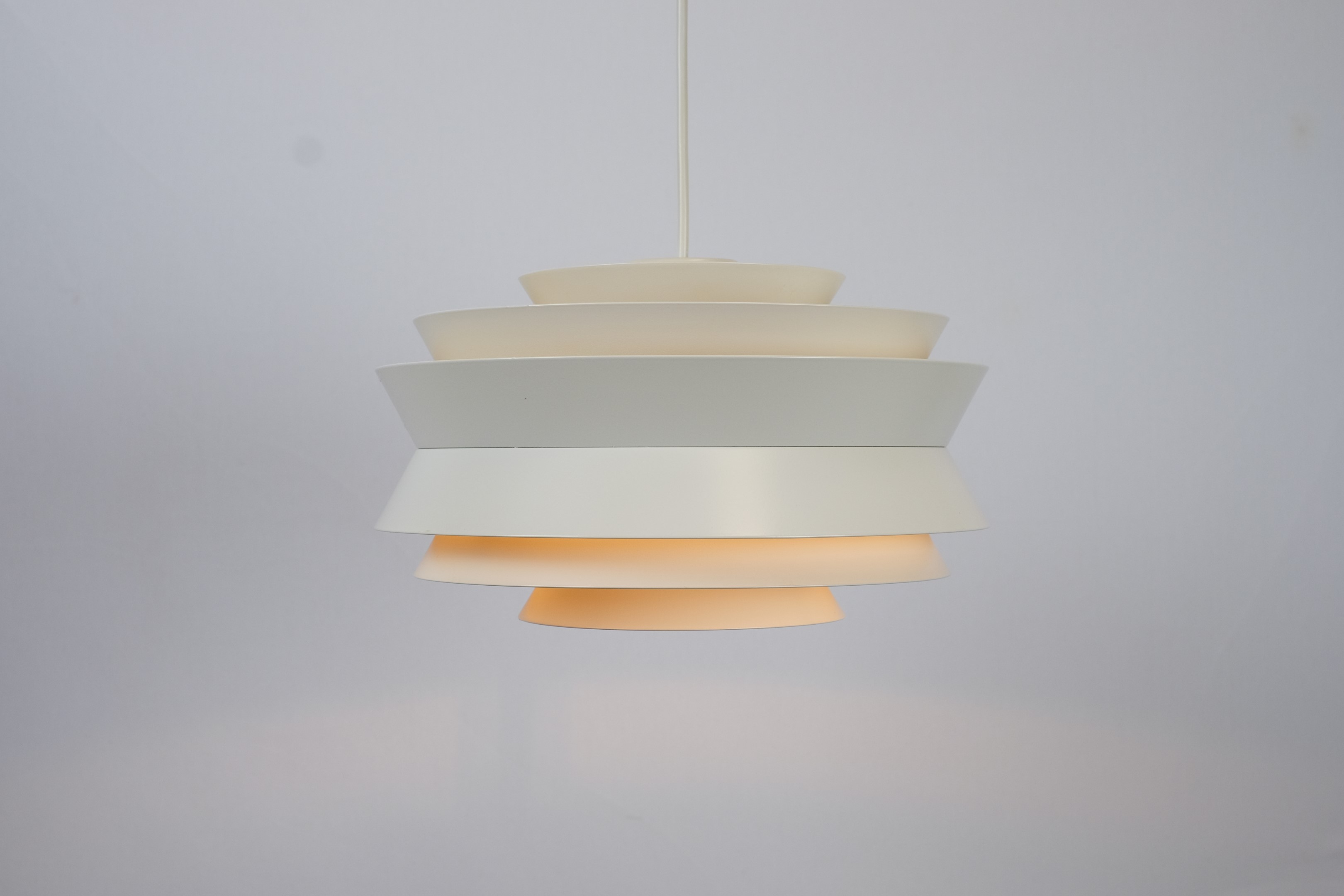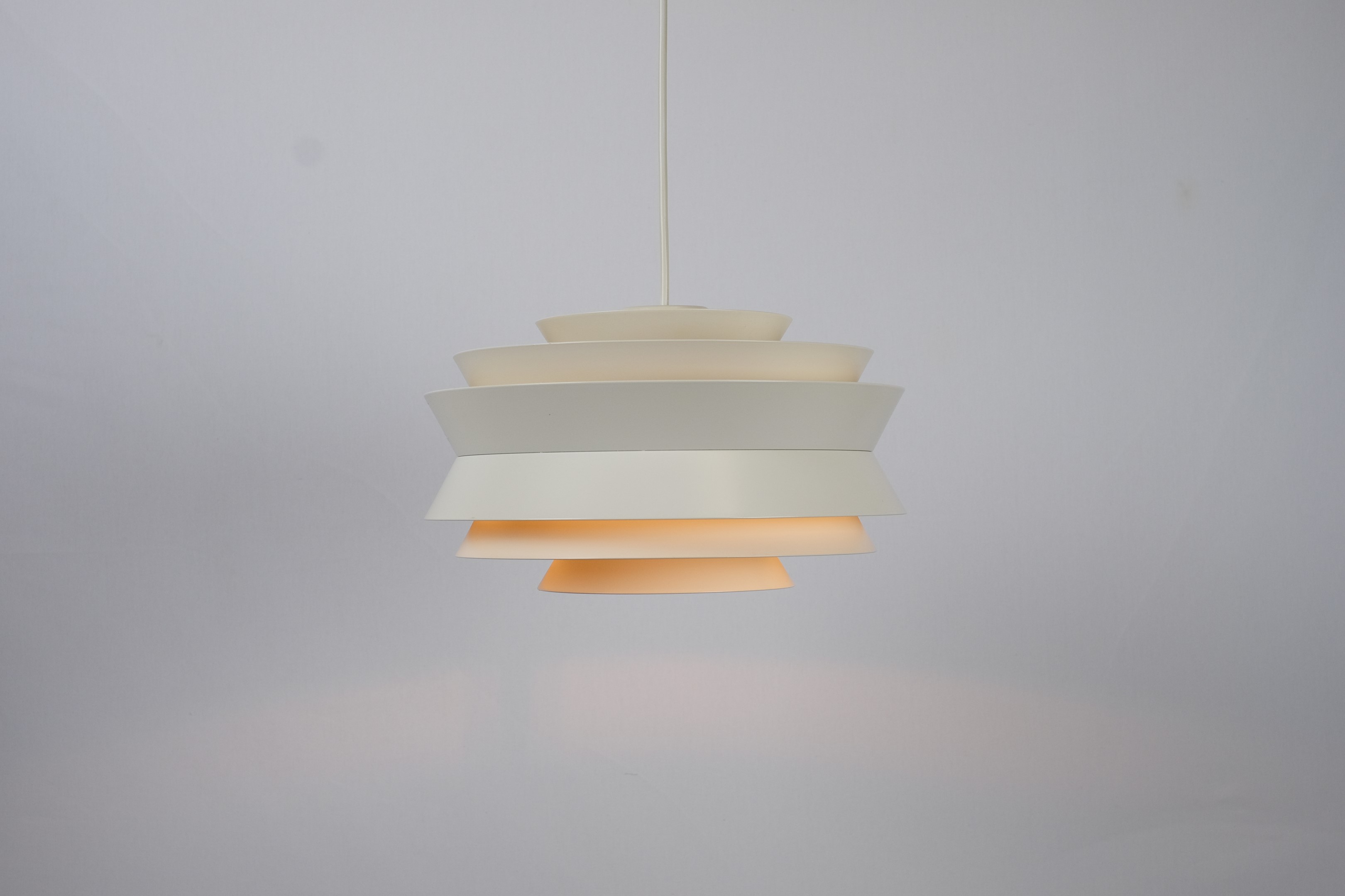 This beautiful retro multi-layered pendant ceiling light was designed by Swedish architect Carl Thore for Granhaga Metallindustri.