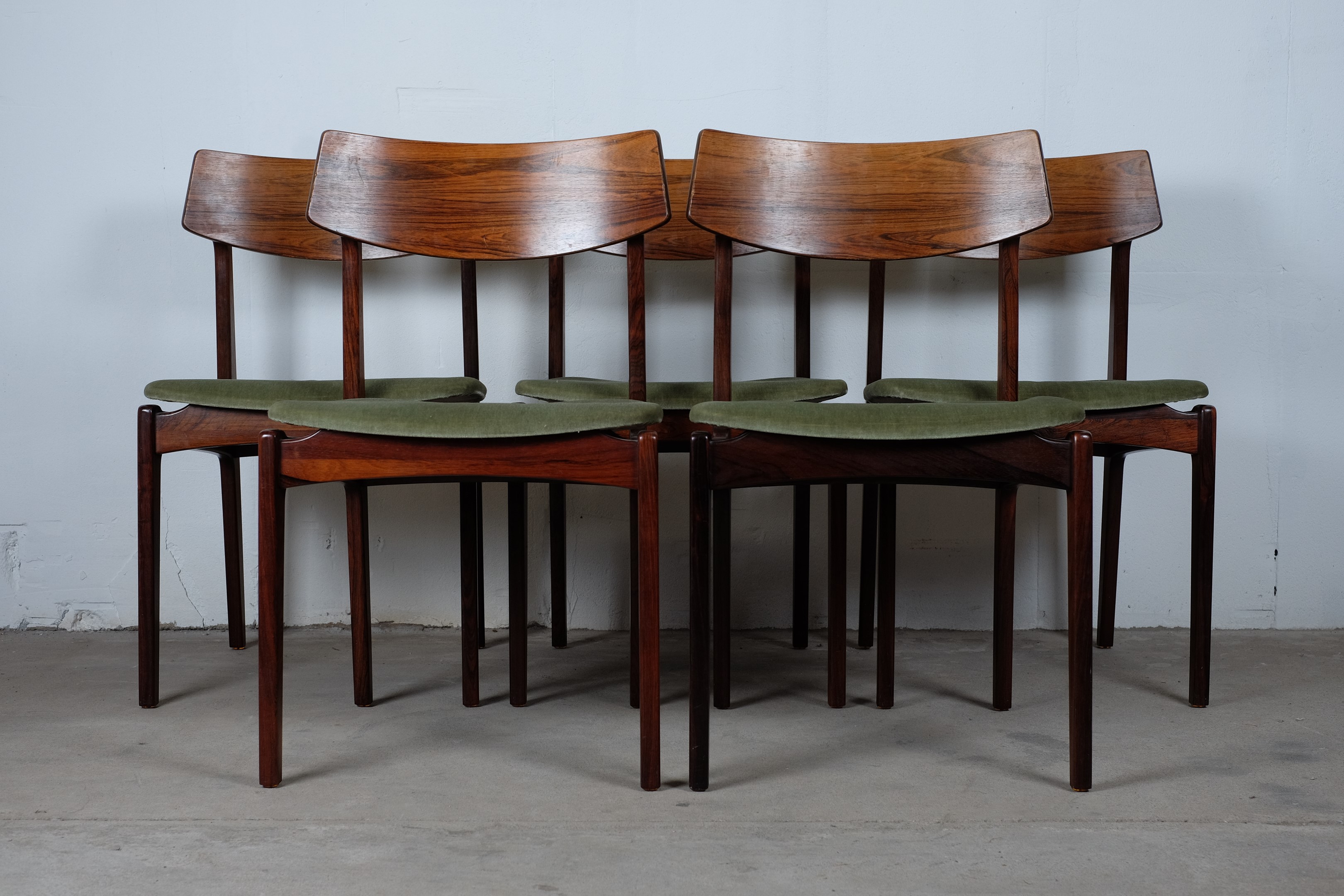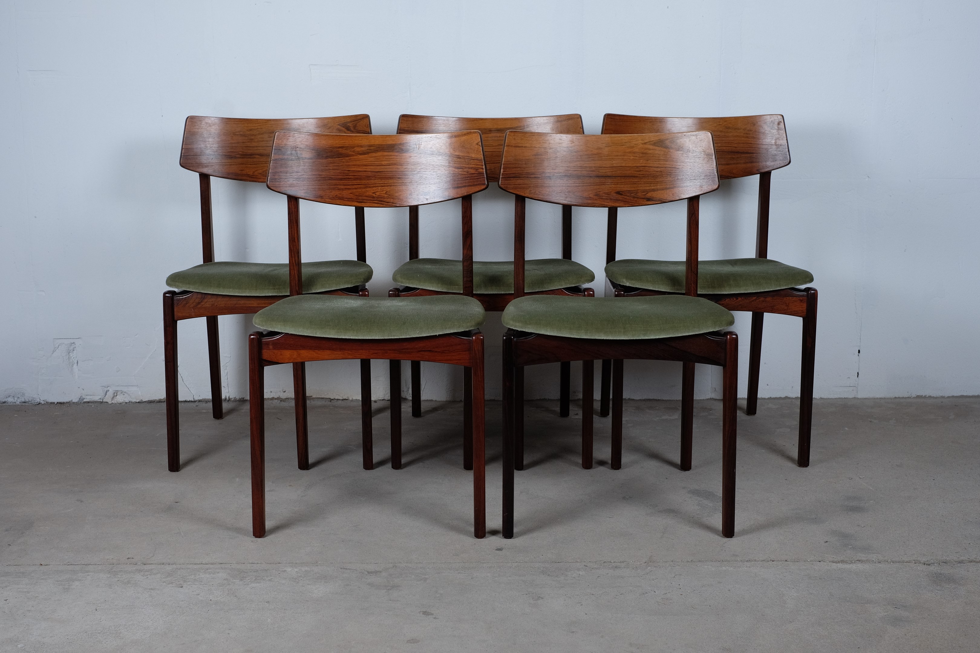 This 5 dining chairs in rosewood is from the 60's.