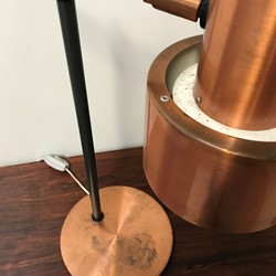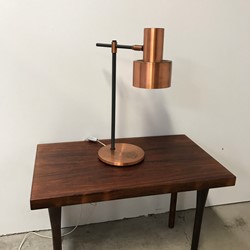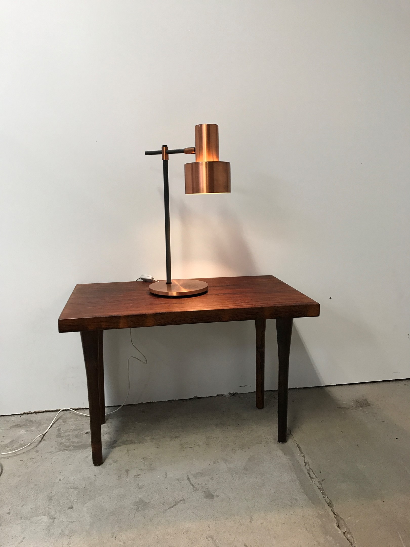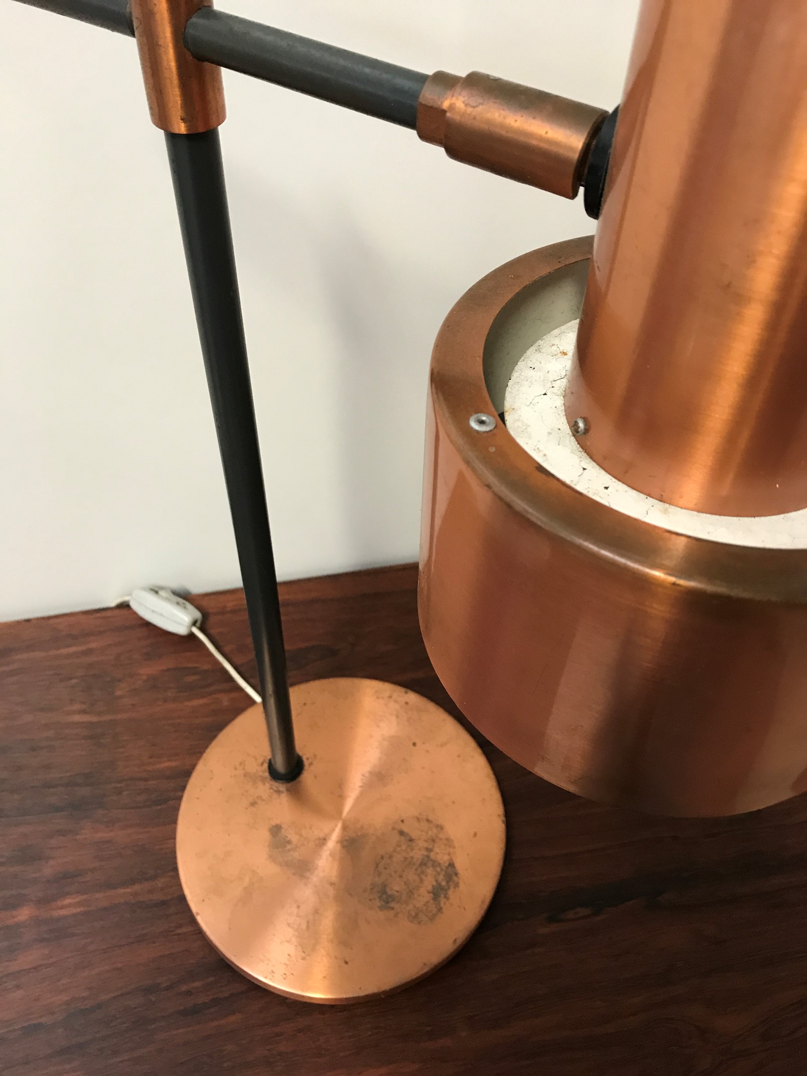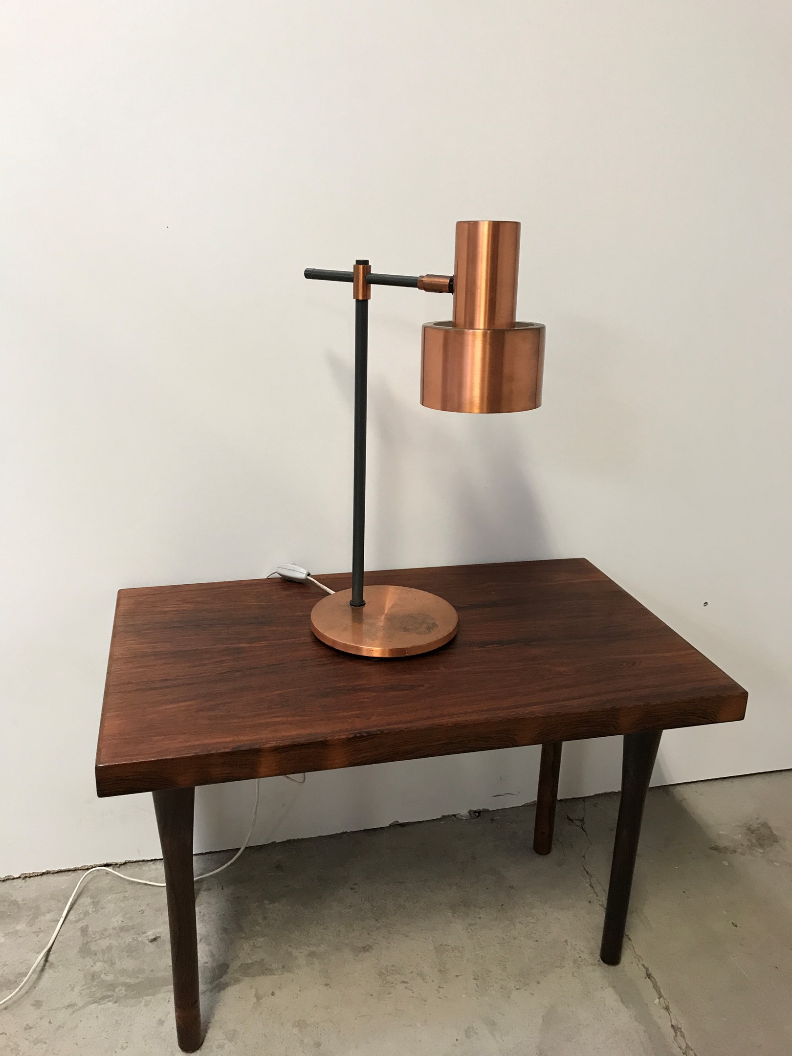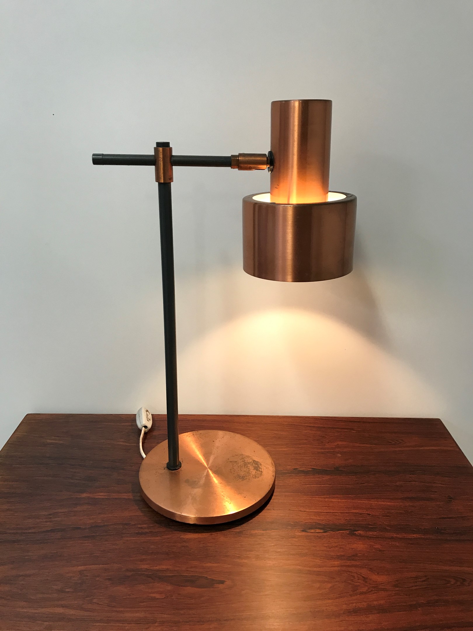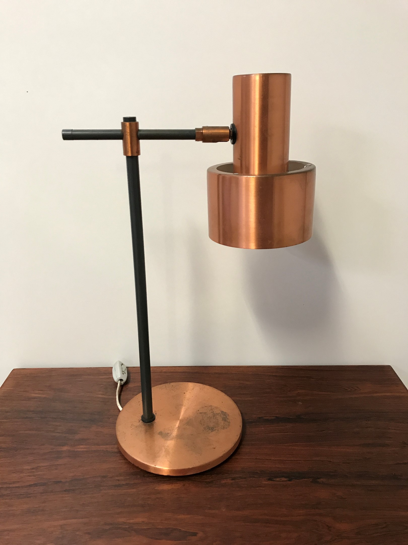 Table lamp designed by Jo Hammerborg for Fog & Mørup in 1967, rare copper desk light in good vintage condition, with age-related wear - see pictures.