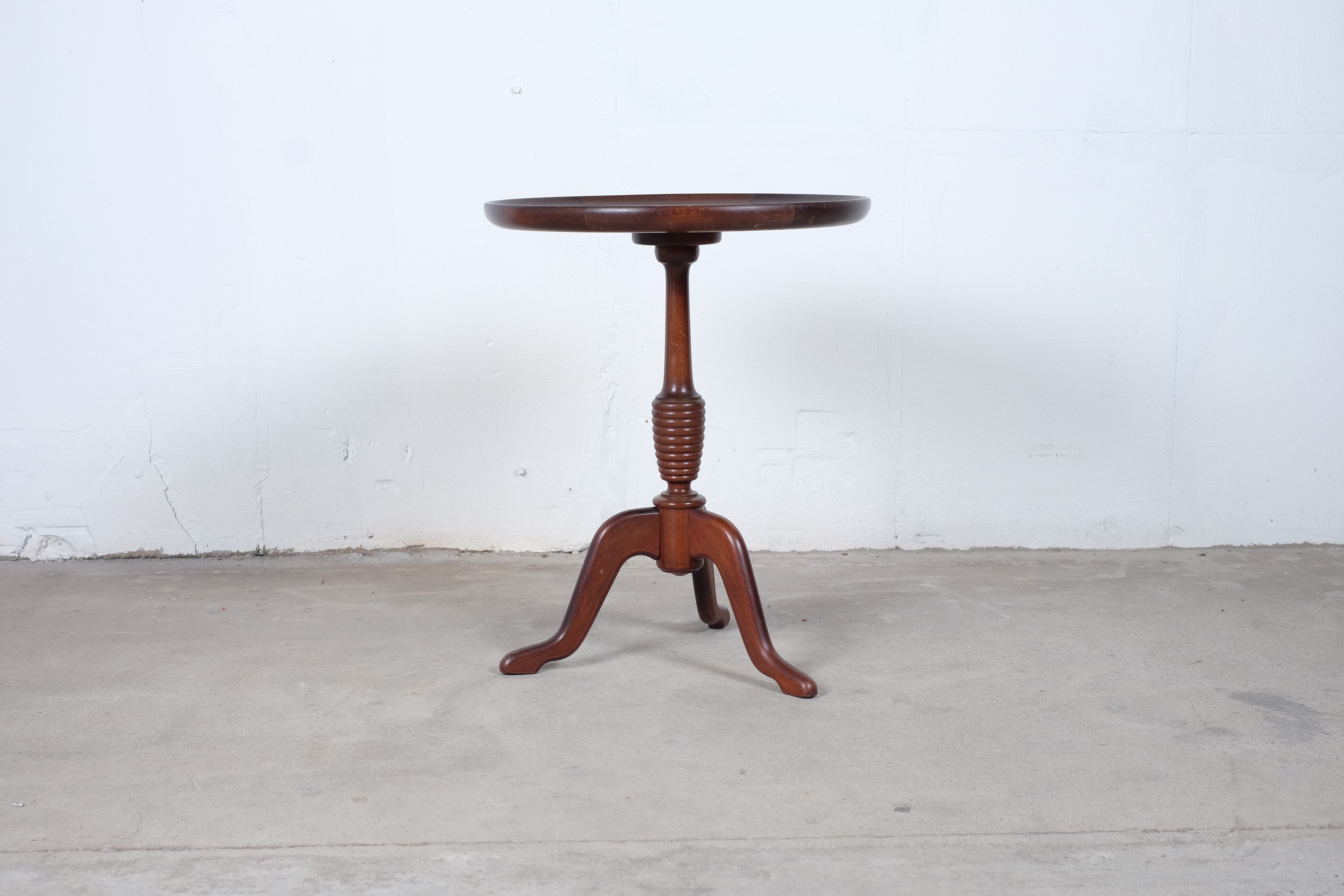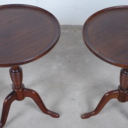 These beautiful antique side tables is manufactured by AK Møbler in Odense, Denmark. These three legged table is in a light and elegant design which makes it fit in almost any home and style.