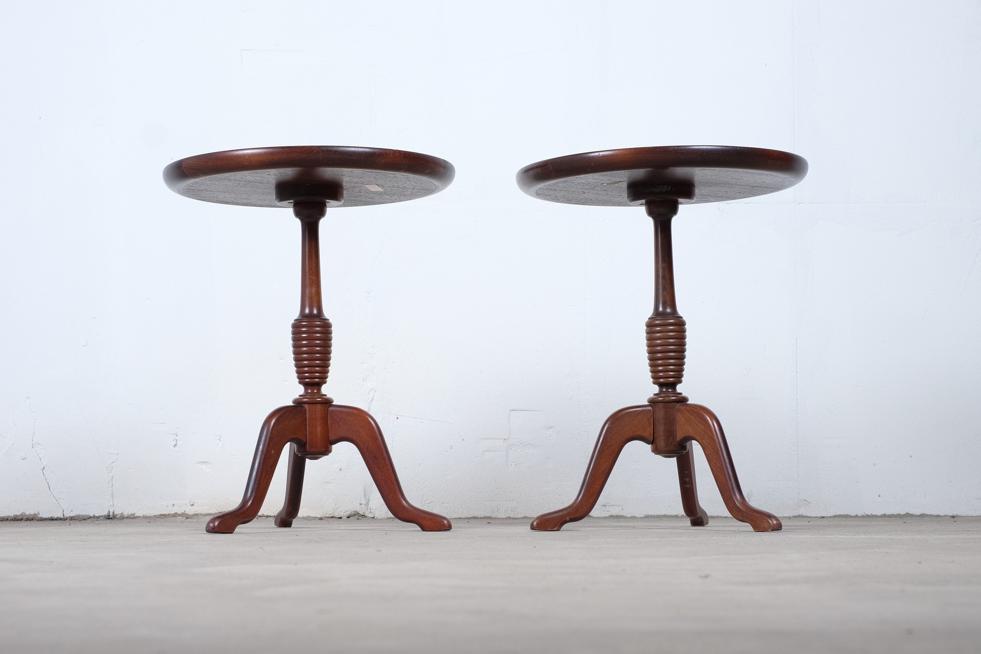 Vintage Set of Round Antique Danish Side Tables