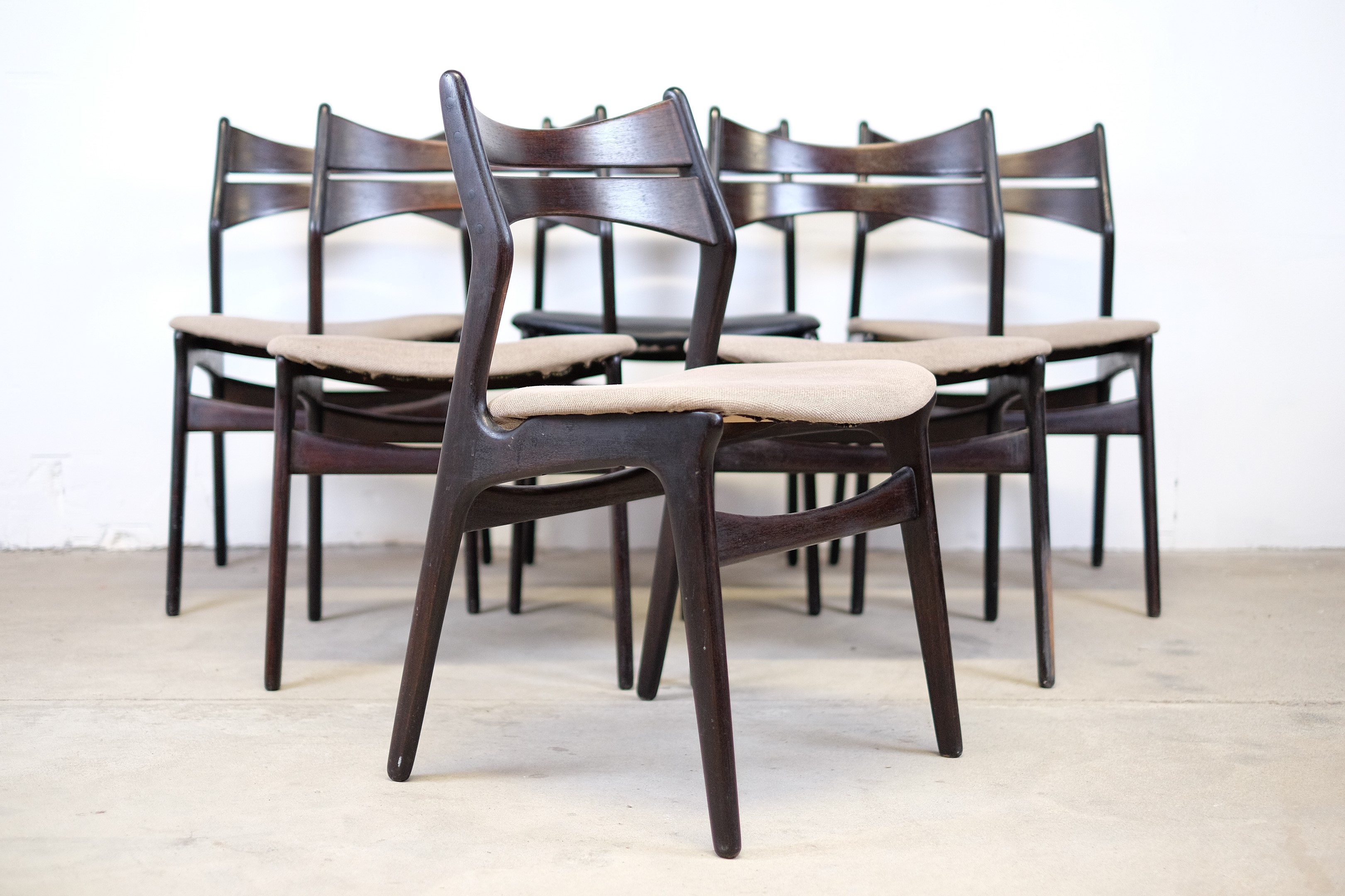 Set of 6 chairs by Erik Buch in good vintage condition.