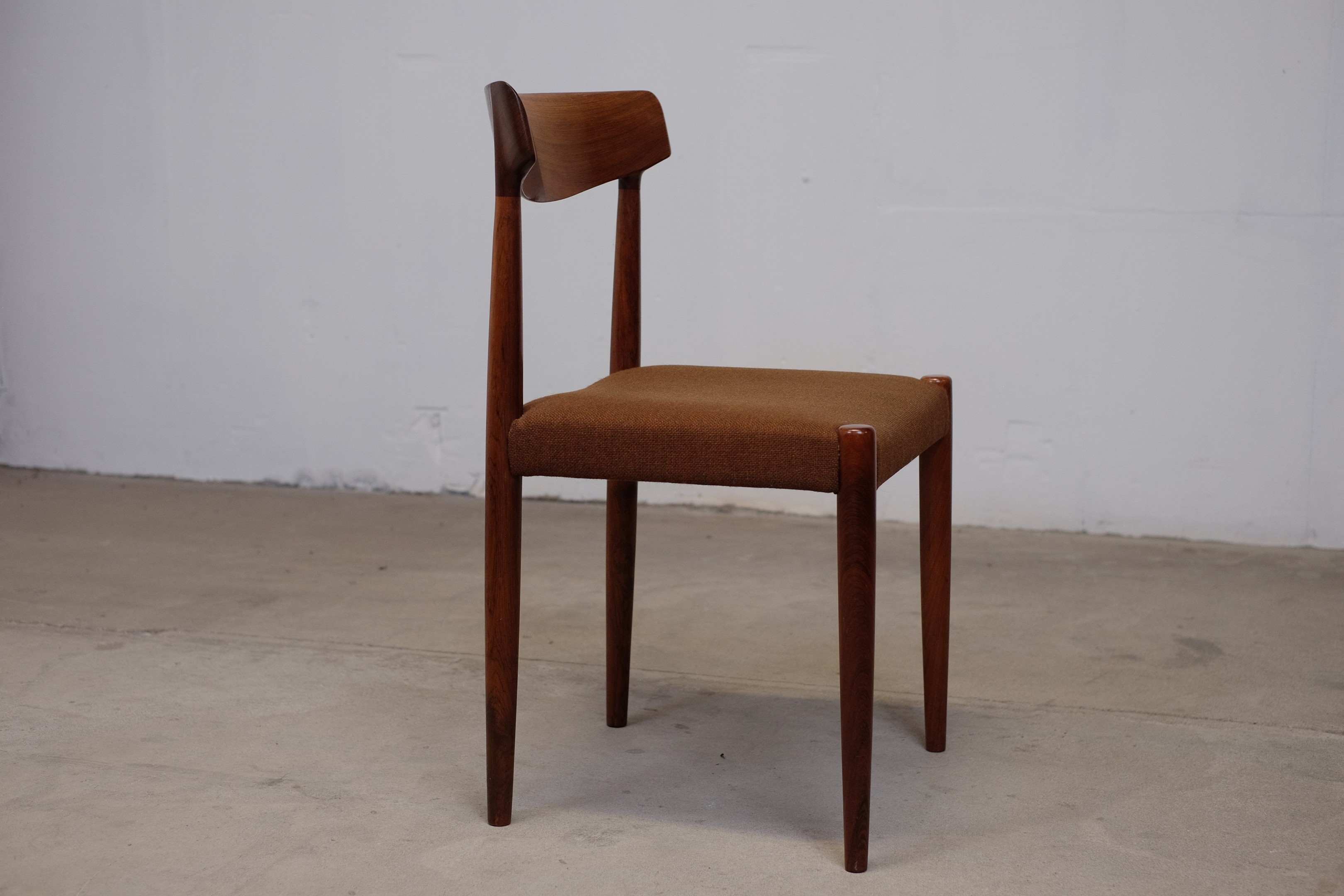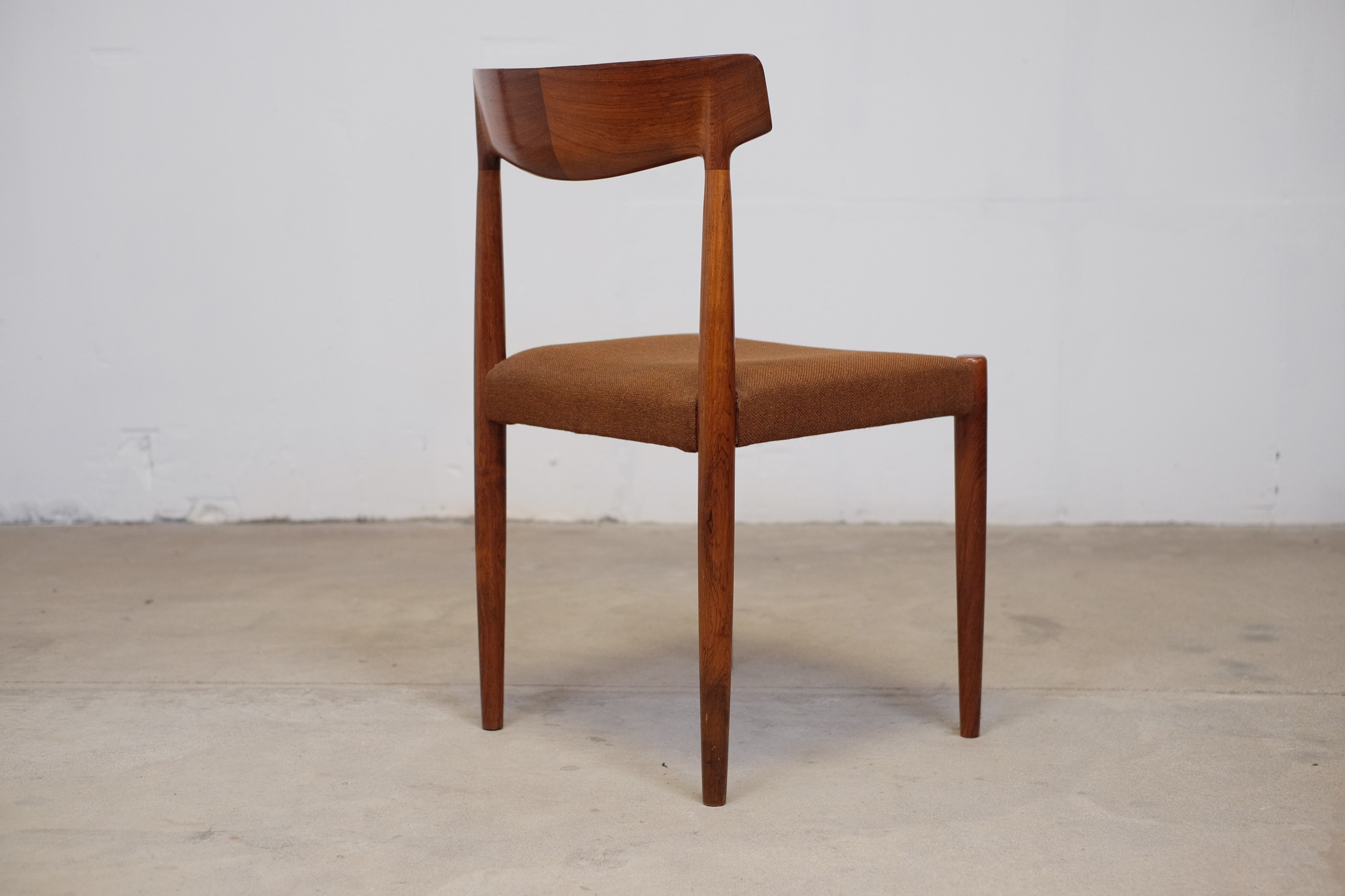 This is Danish craft from a golden age, a time when emphasis was placed on functionality and especially design and quality, which is expressed in this chair. Massive rosewood frame in the most beautiful rosewood. The chairs are in good condition with few signs of use. Many details on the chair and as written, a great piece of crafts.