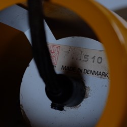 A dark yellow lamp, with some beautiful shapes. Very styled and classic design, which Fog & Mørup has to be known for and of course their ways to make lamps that provided great light. The lamp is useful as a dining table lamp but can easily decorate an empty corner and just hang for itself.