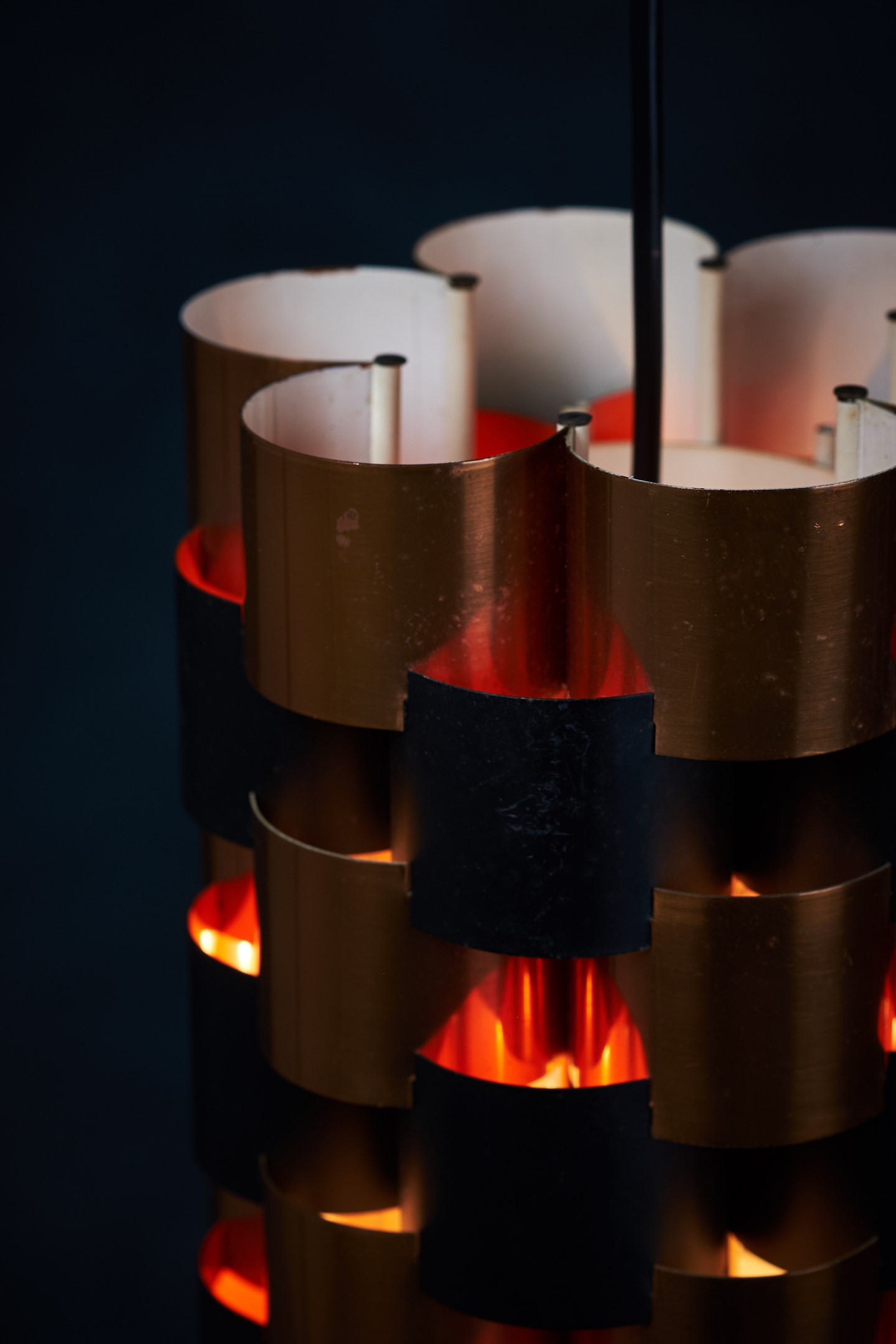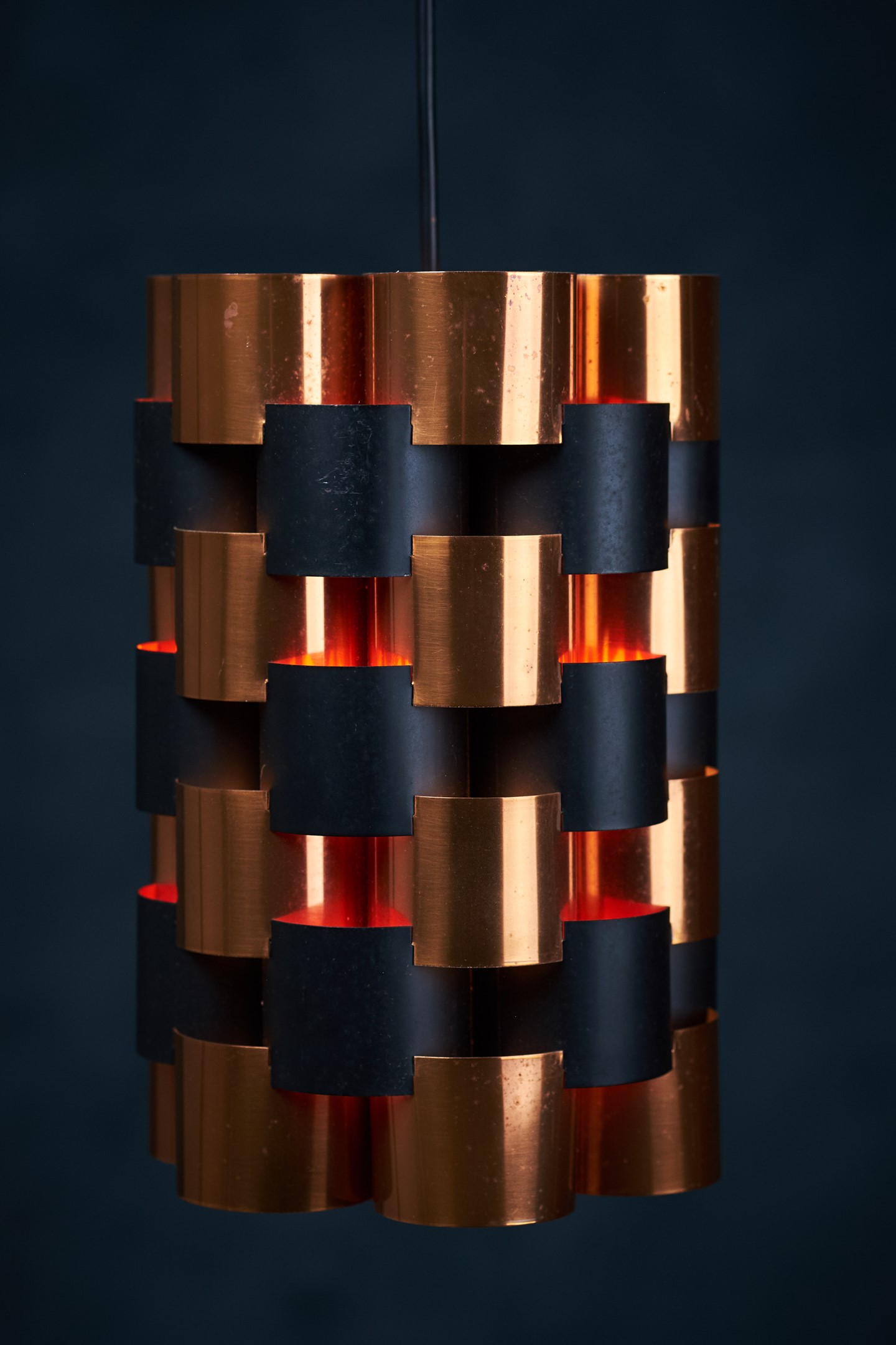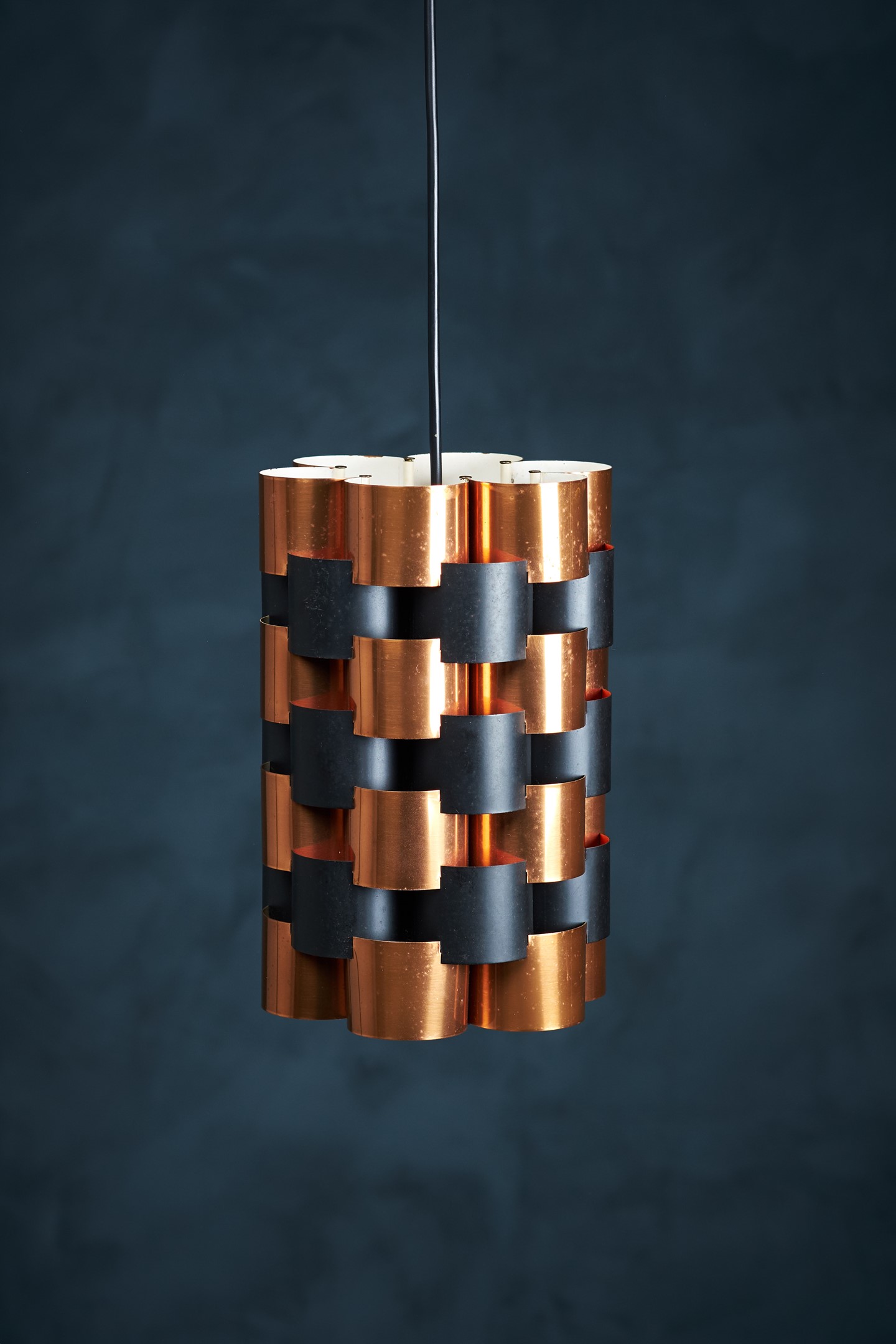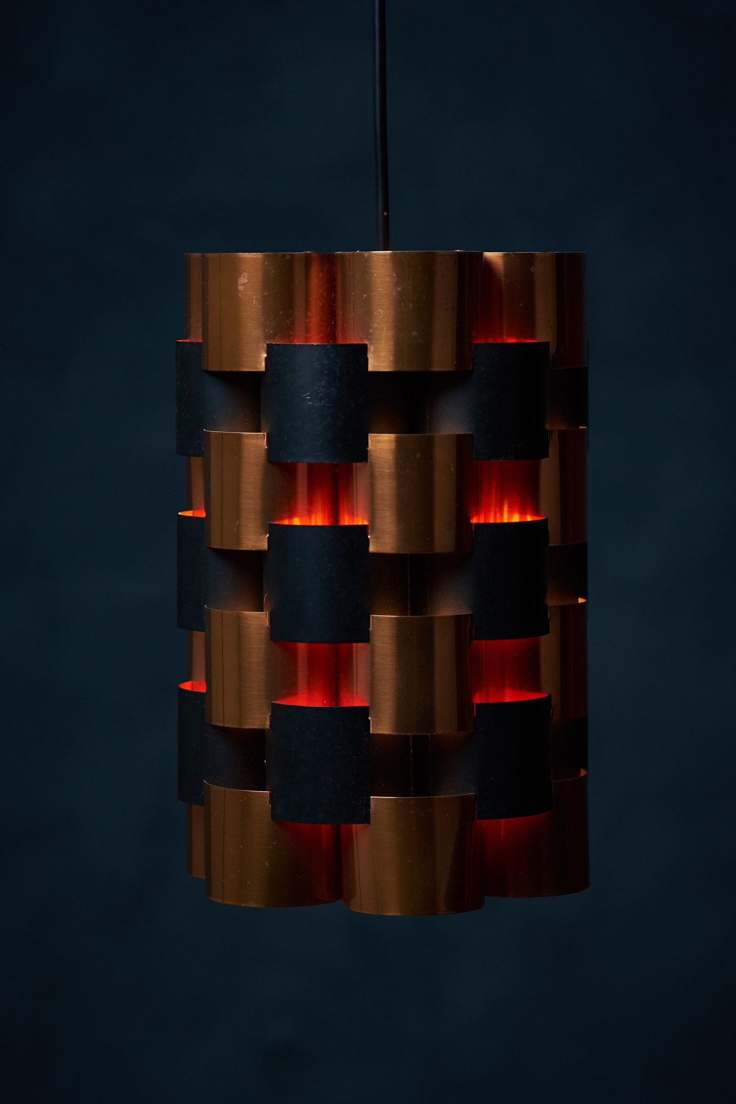 Set of 3 mid-century ceiling lamps by Werner Schou in brass. The cylinder shape of the lamps offers unique lighting for your home that is unlike modern day lighting. Great lamp you can fit in almost everywhere at home. Diameter is 17cm