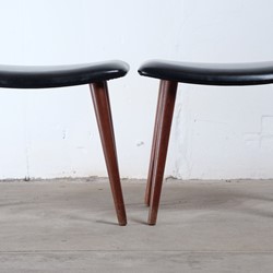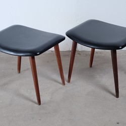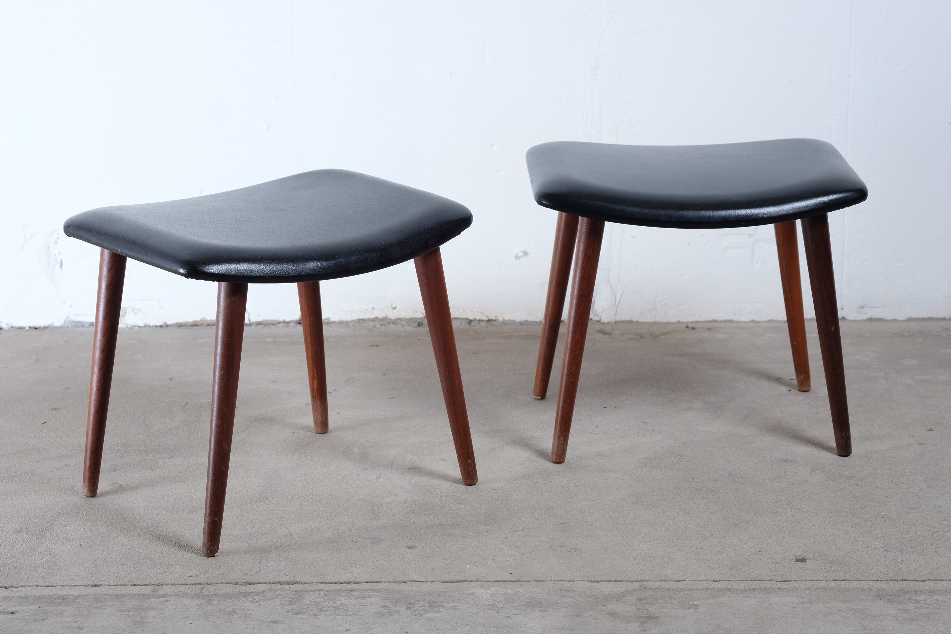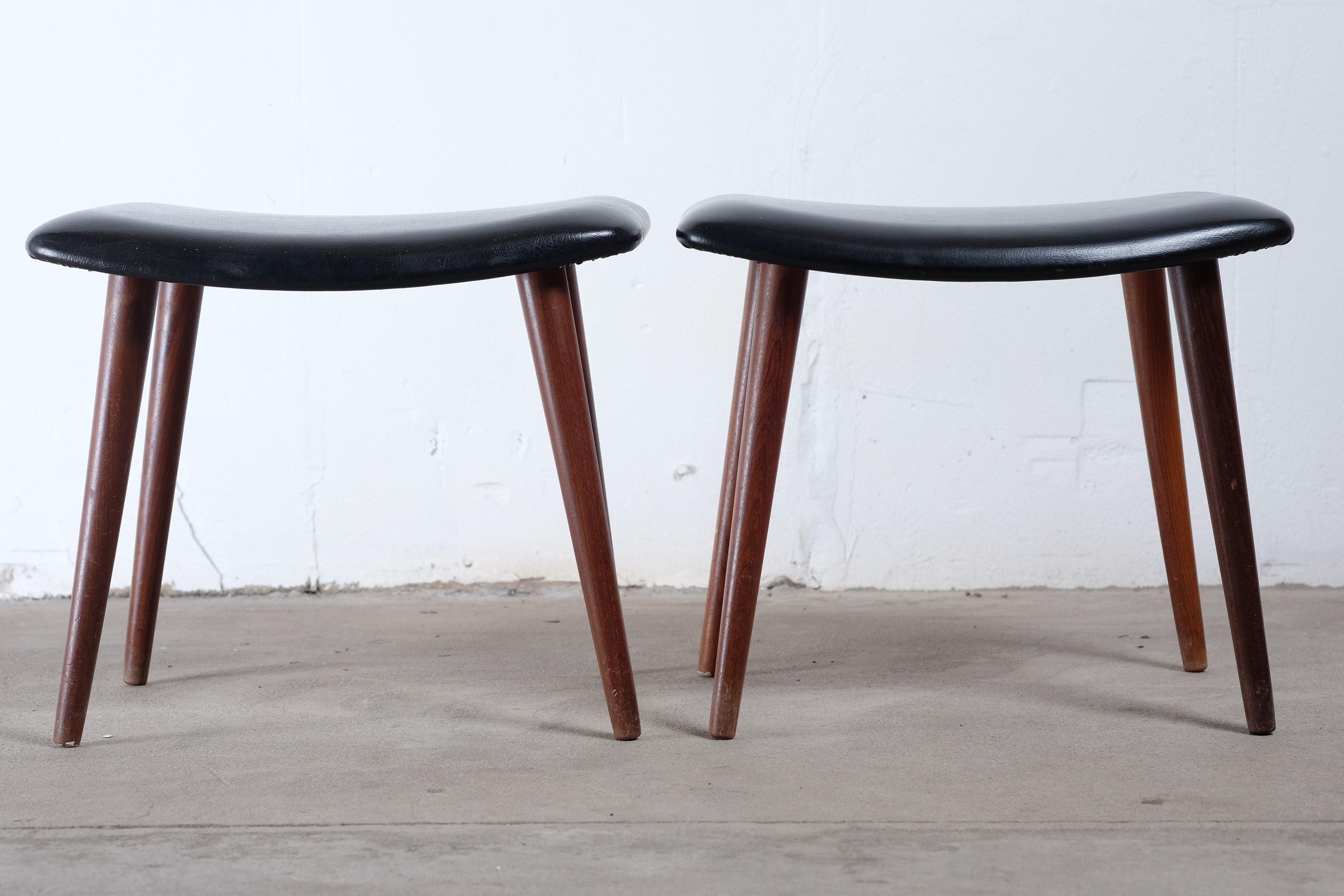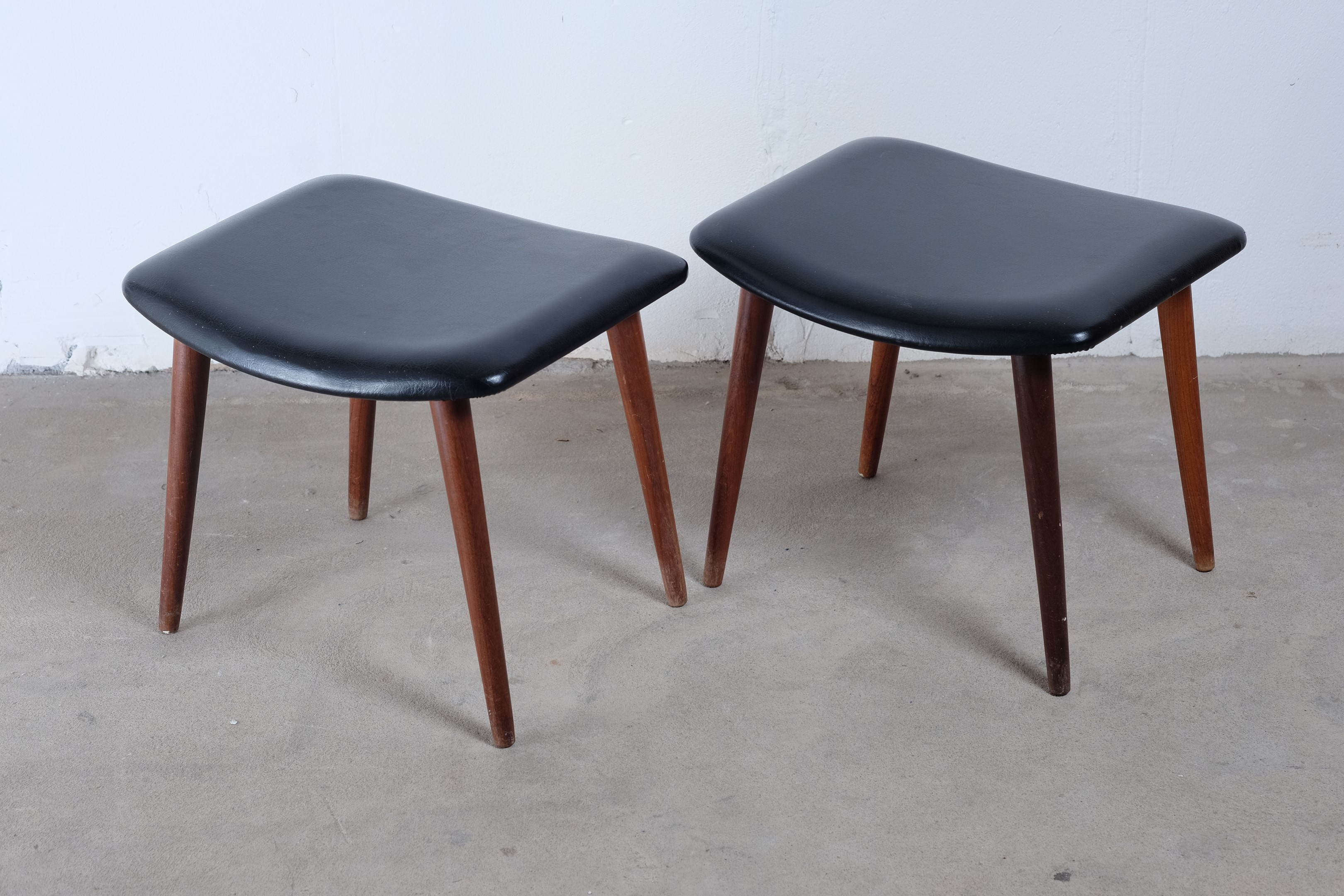 Set of two stools in very good quality, legs in solid teak and seats in black artificial leather. Danish design from the 60's.