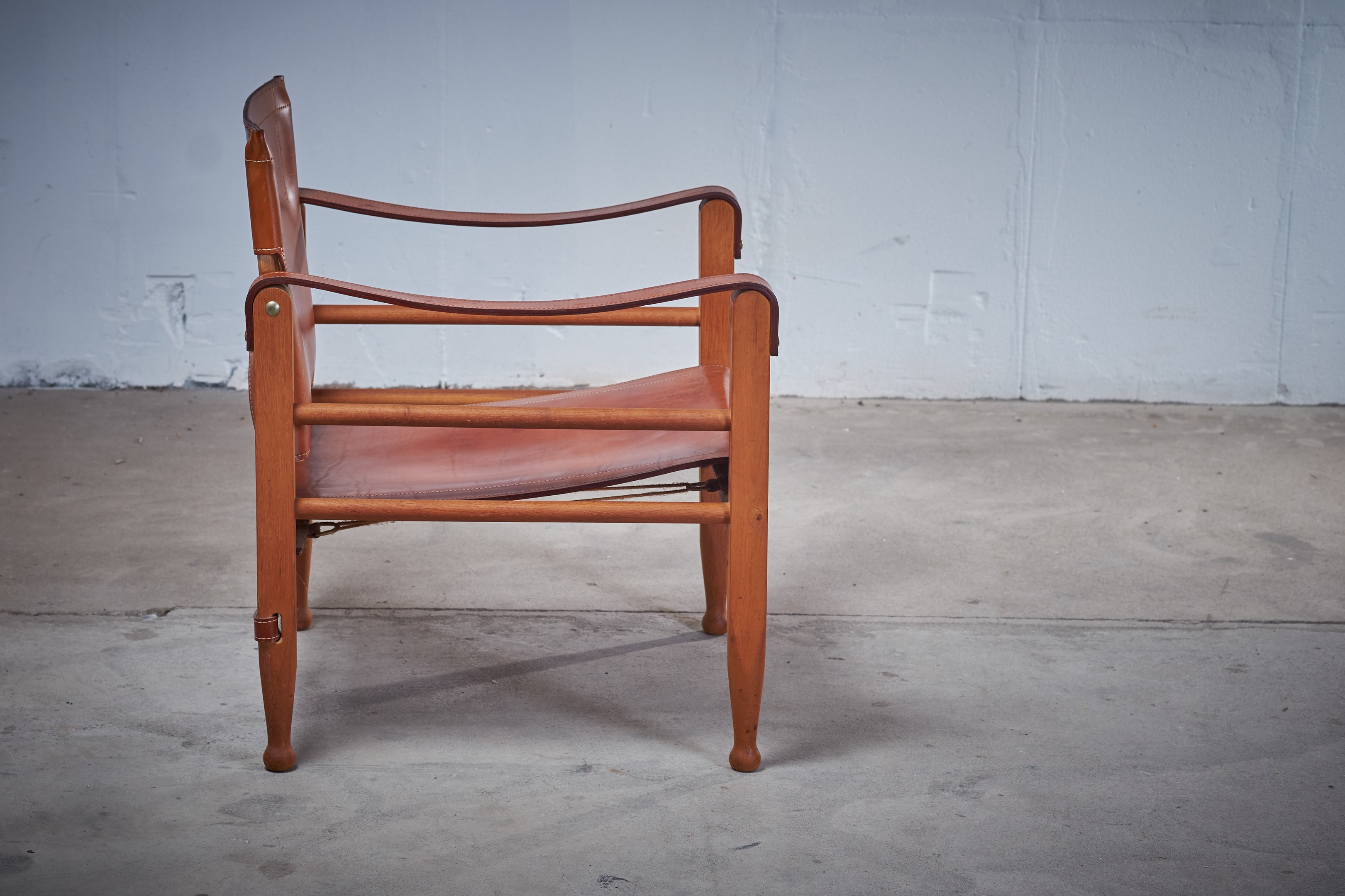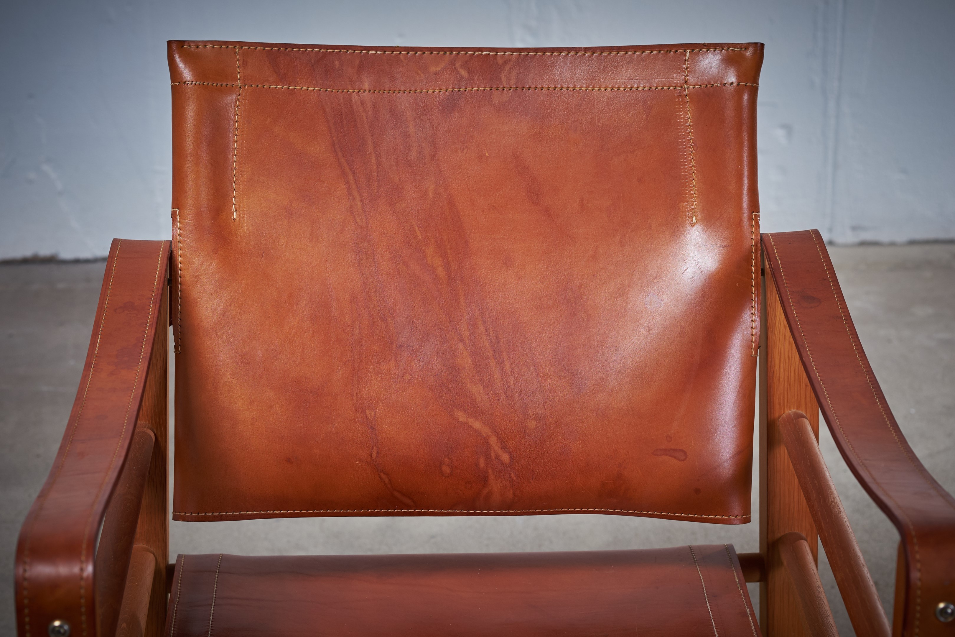 Safari chair by Aage Bruun and Son, Denmark, in beechwood and tan / cognac natural leather.