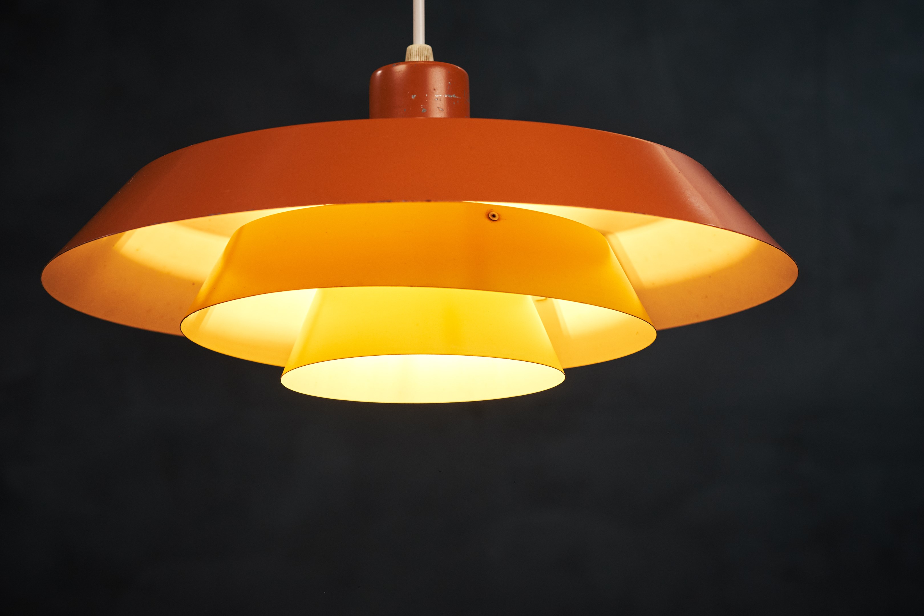 Bent Karlby, created the Troika pendant in 1968 for LYFA. This beautiful pendant is part of the so called 'Lyfalux' series, which are according to the advertisement from the 60s “shining examples of modern lightings”.