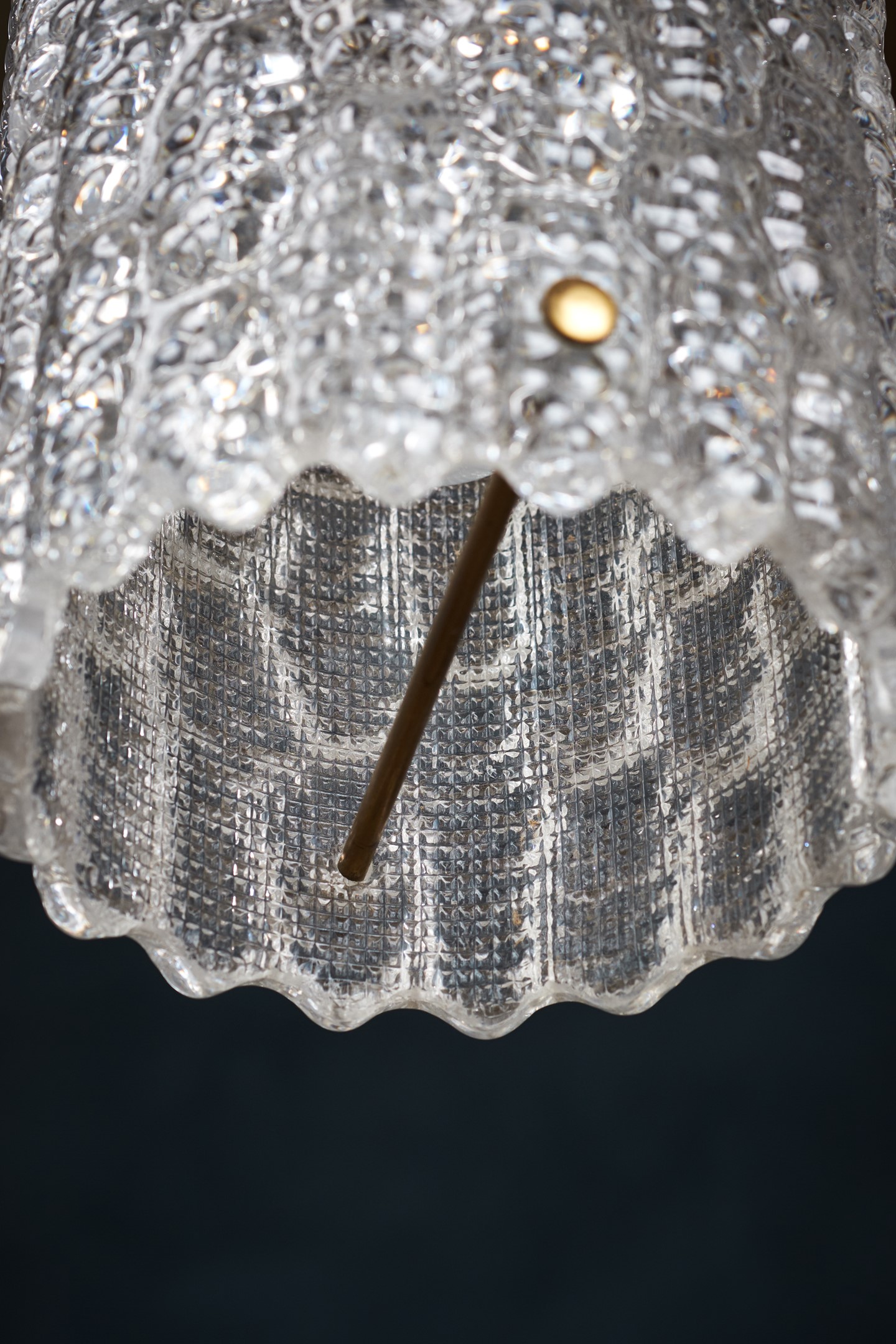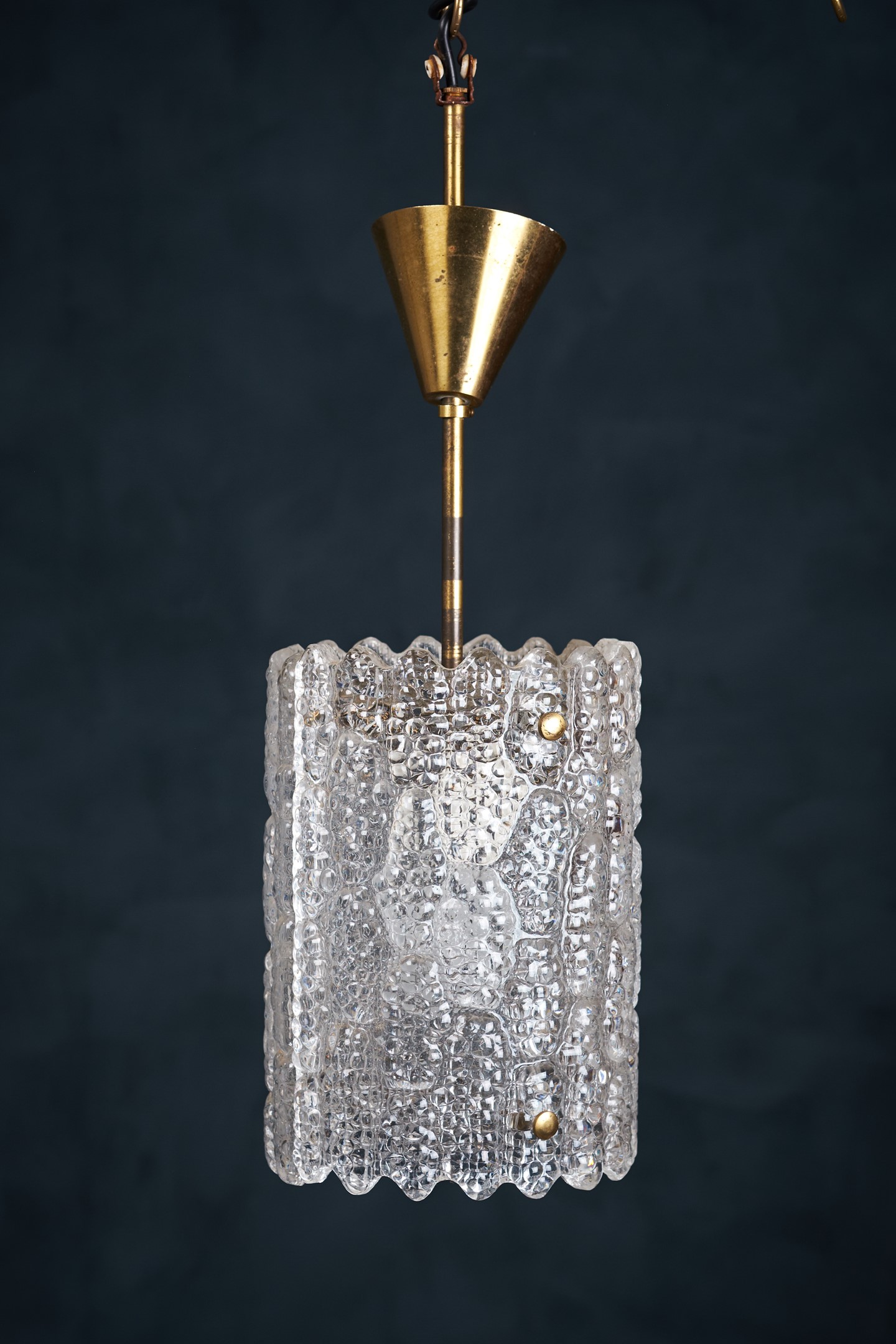 Pendant designed by Carl Fagerlund for Orrefors Sweden, 1960s. This stunning lamp is made of brass with crystal glass as shade, which provides a nice a warm light. The lamp is in a very good condition with no chips in the glass.