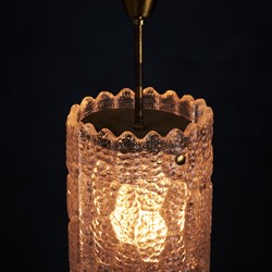 A pendant which is not hard to find room for! The textured glass reflects a wonderful light. Perfect as a pendant for a corner where it can express itself.