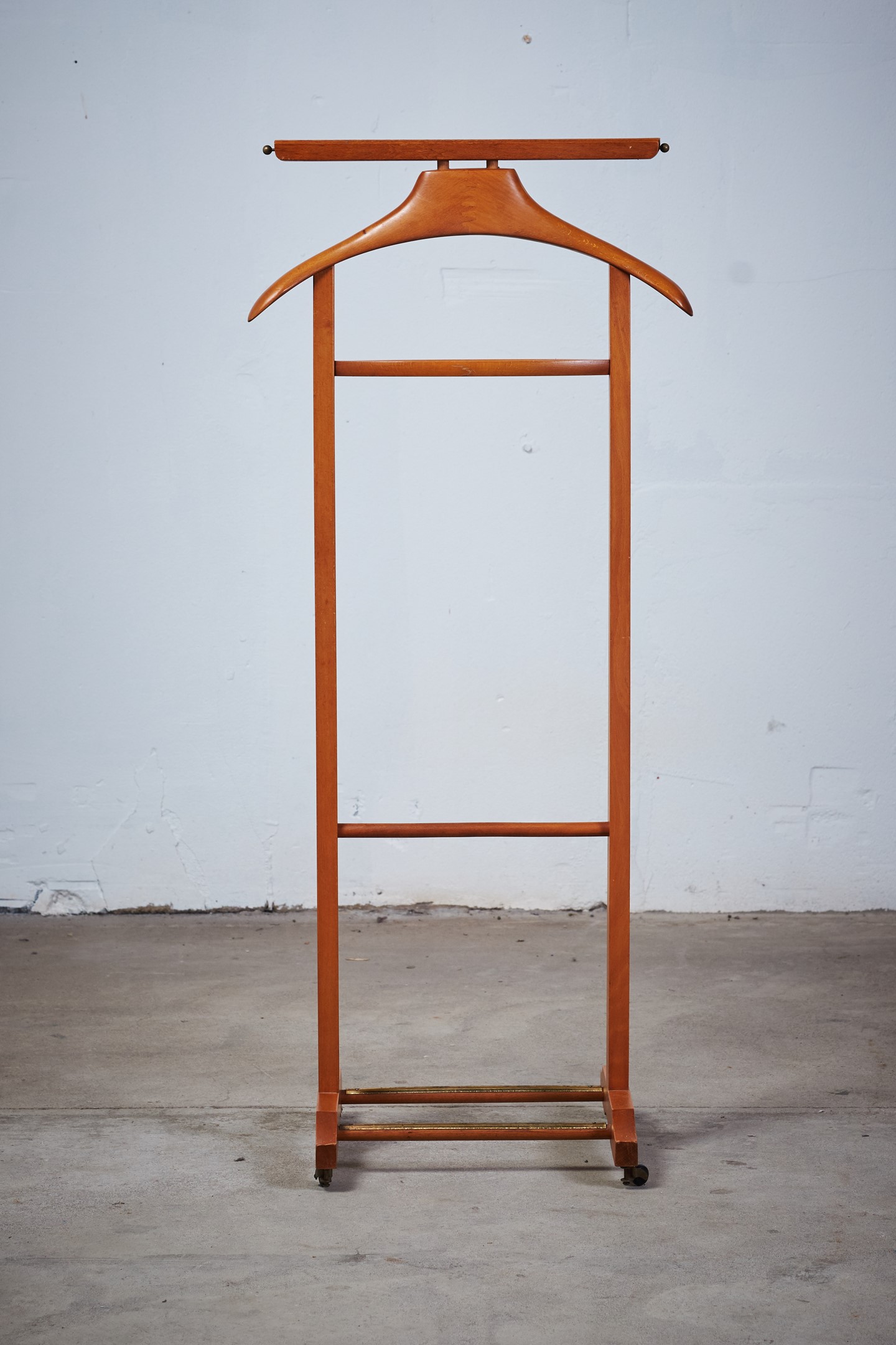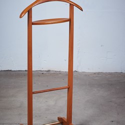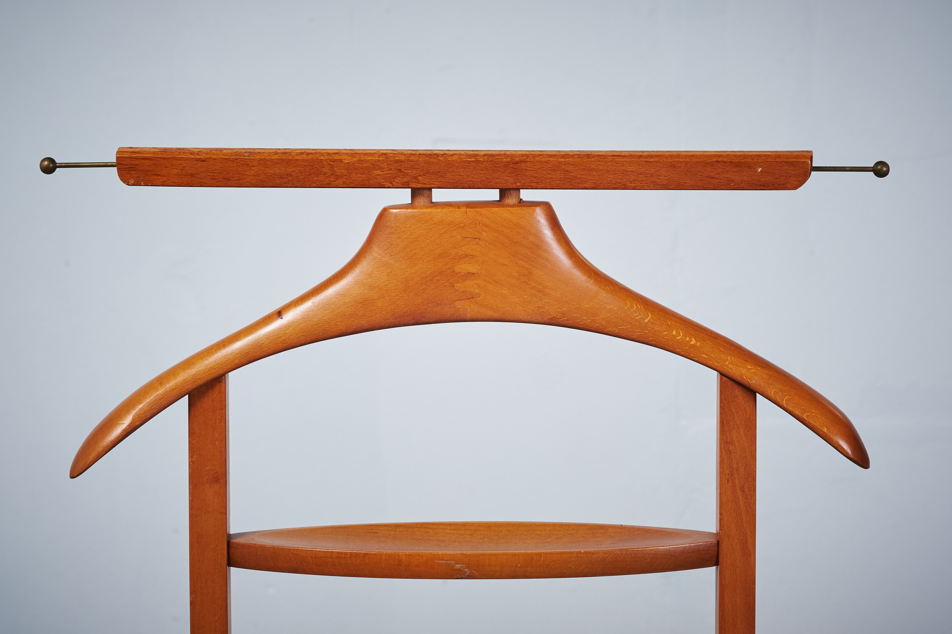 The shirt holder features two extendable brass rods for extra space for more hangers and has a storage for your watch and jewelry. The shirt holder is in very good vintage condition.