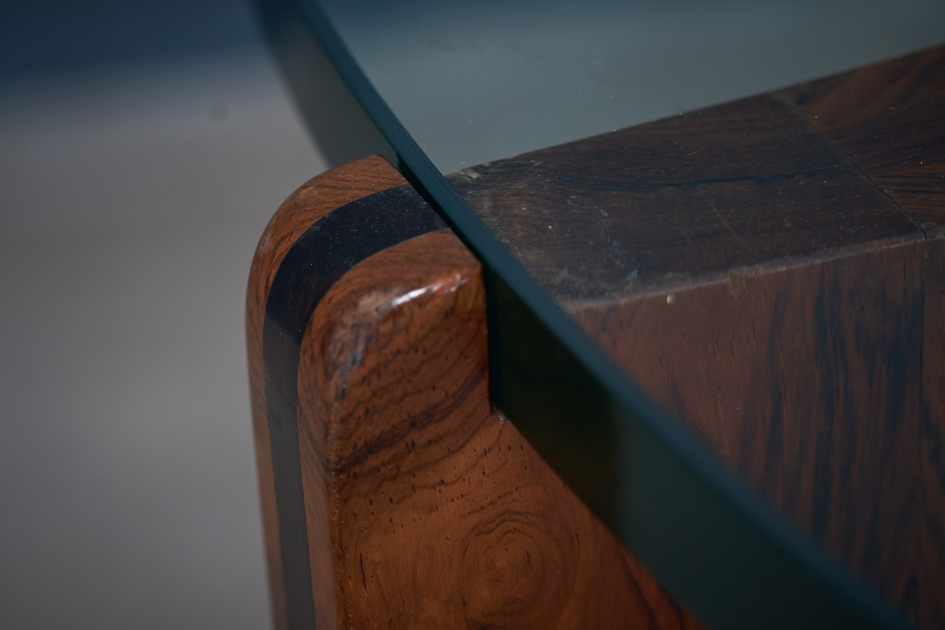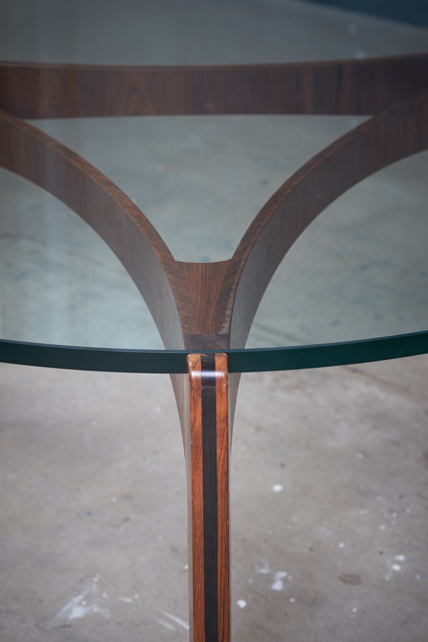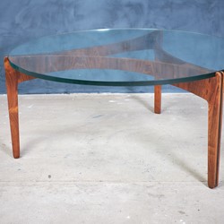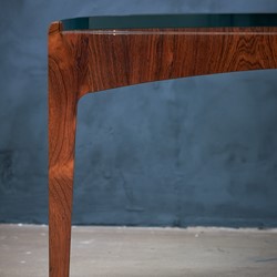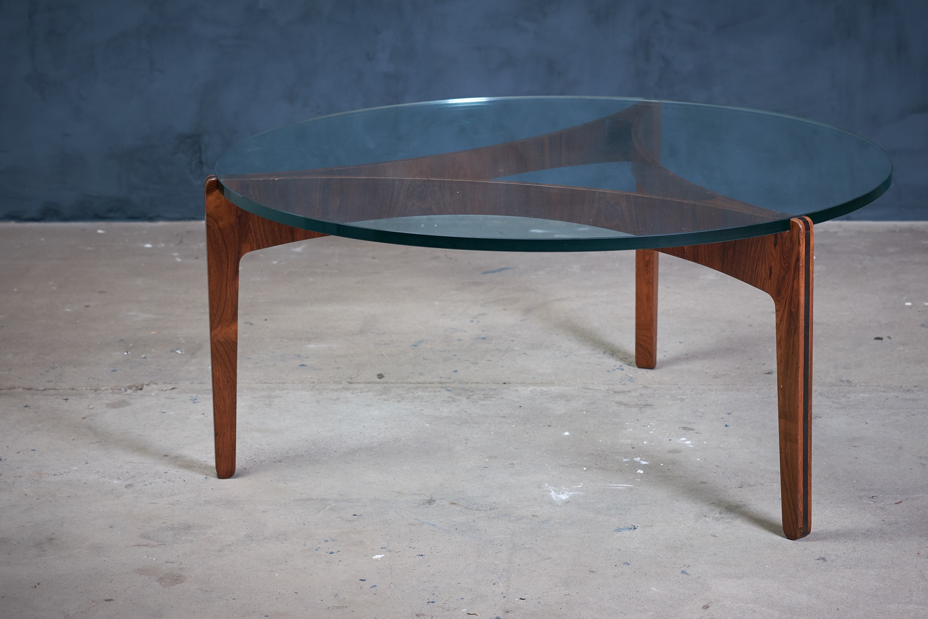 Beautiful coffee table in rosewood designed by Danish designer Sven Ellekaer in the 60s. This beautiful table features a thick and brand new glass plate in the original dimensions, not a scratch. Stunning frame with lot of beautiful details. This table would be a great addition to any modern environment.