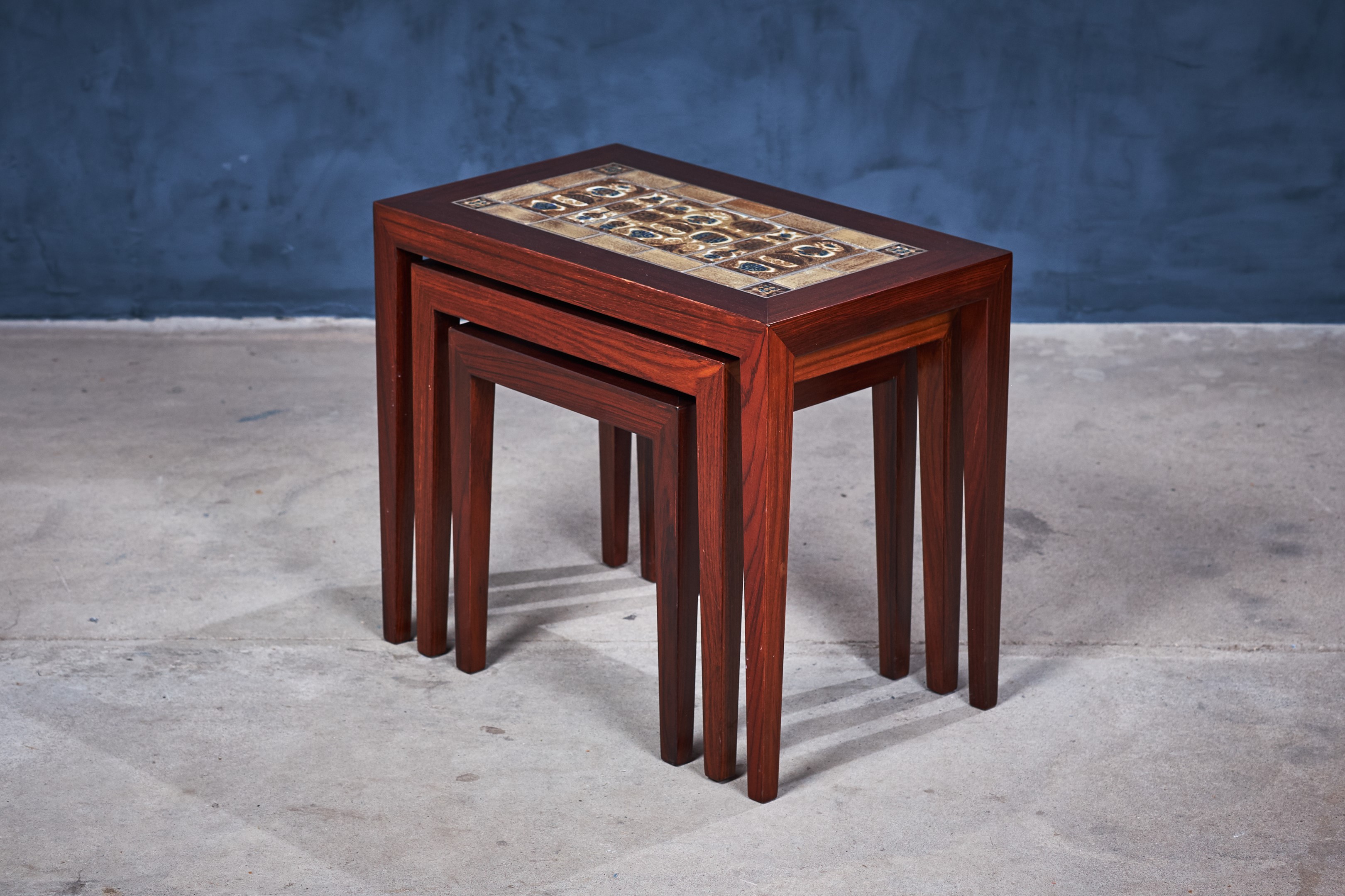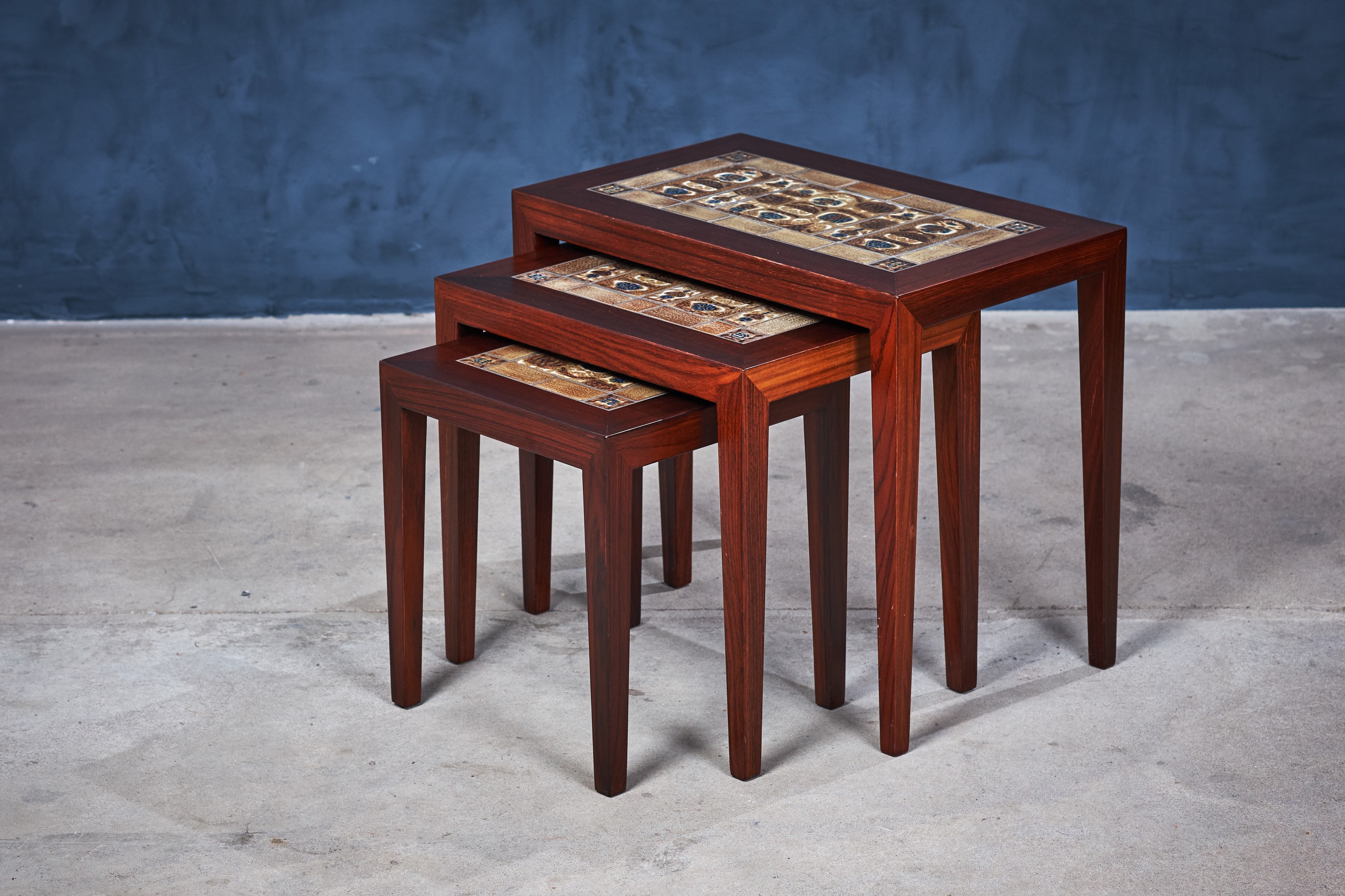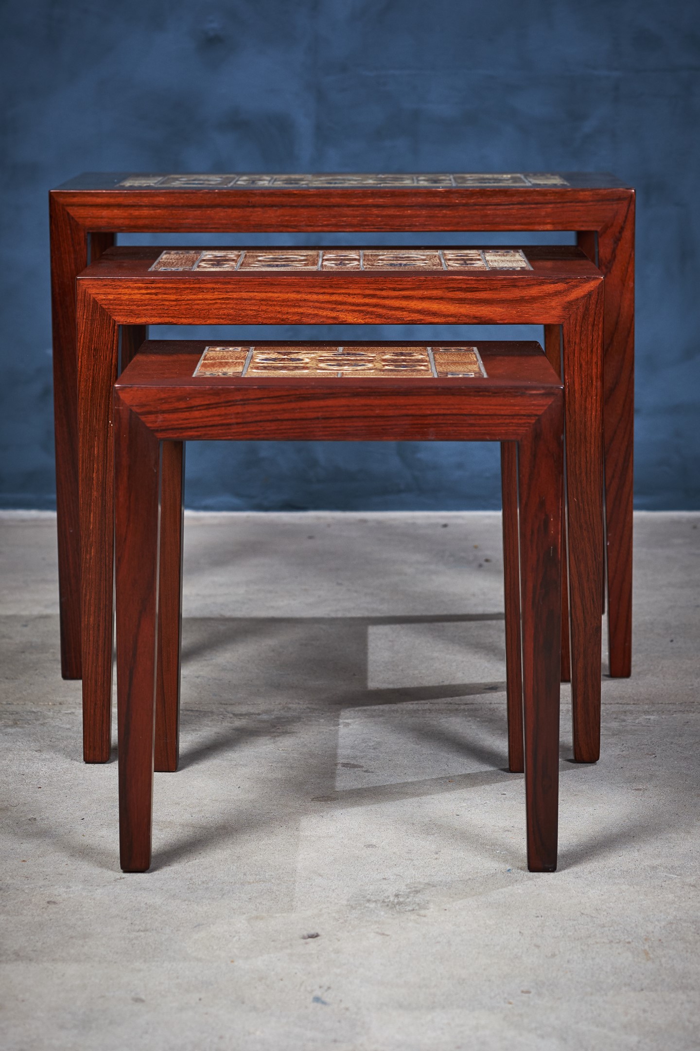 Rosewood Nesting Tables with Tile Tops by Severin Hansen for Haslev Møbelsnedkeri, 1950s