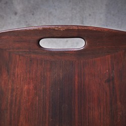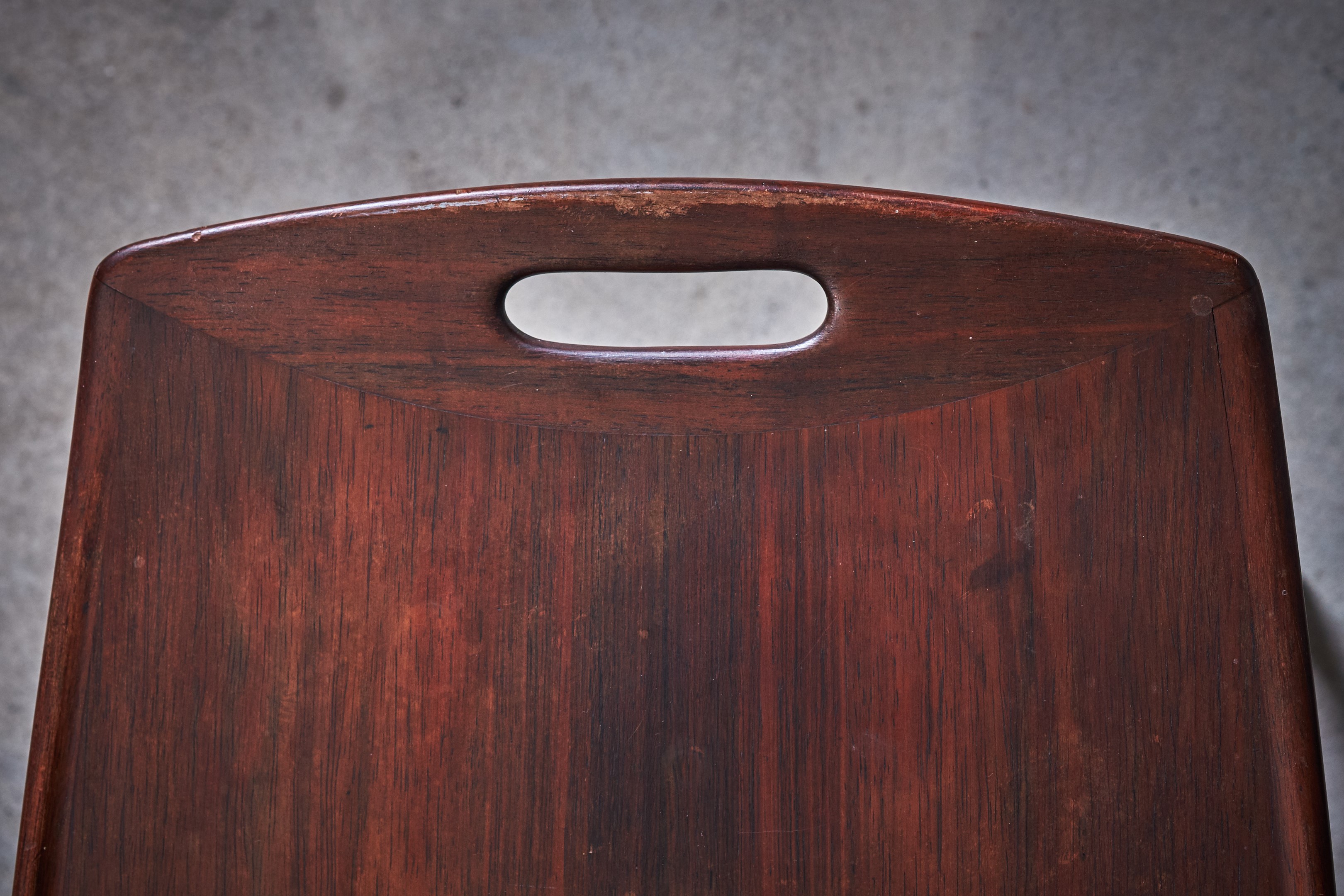 A set of nesting tables in rosewood, with tapered legs. Designed in 1964. The largest table is in the form of a tray with raised edge. This is truly some beautiful tables by A. Jakobsen. The set has been completely restored and therefore in an amazing condition.