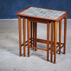 Danish Teak, Beech & Ceramic Tile Nesting Tables, 1960s