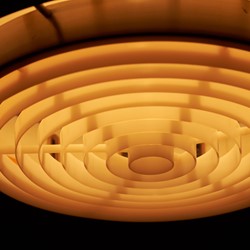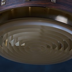 Stunning mid-century ceiling lamp with rosewood laminate on one of the shades. This lamp provides a nice and warm light and would fit in most modern environments.