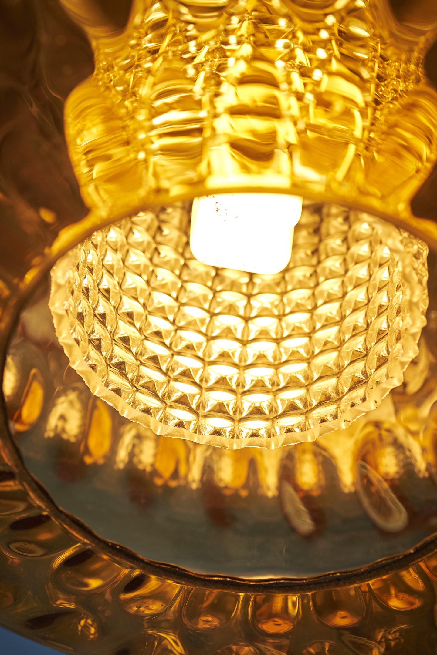 Beautiful shaped green crystal pendant with an inner shade made in clear crystal. The pendant is attributed to the Swedish designer Carl Fagerlund for Orrefors in the 1960s. The shine from the pendant is very special because of the shape but also due to the vertical lines molded into the crystal shade. Provides a great light and would be a great addition to any modern environment.