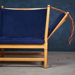 This model 1789 spoke-back sofa was designed by the Danish designer Børge Mogensen. It features a solid beech frame and has been reupholstered with Comfort fabric 'Gabriel', color code 00040. It was designed in 1945 but was first produced in 1963. This sofa was made in 1984 by Fritz Hansen in Denmark. The fabric is easy to clean and can be wiped over with a wet cloth.