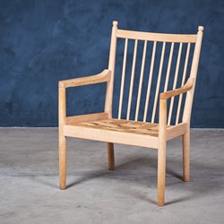 This armchair, model 1788, was designed by by Hans J. Wegner. It comes in beech and has been reupholstered with 'Gabriel' fabric, color code 00040, from Comfort. The type of fabric is very easy to clean with a wet cloth.