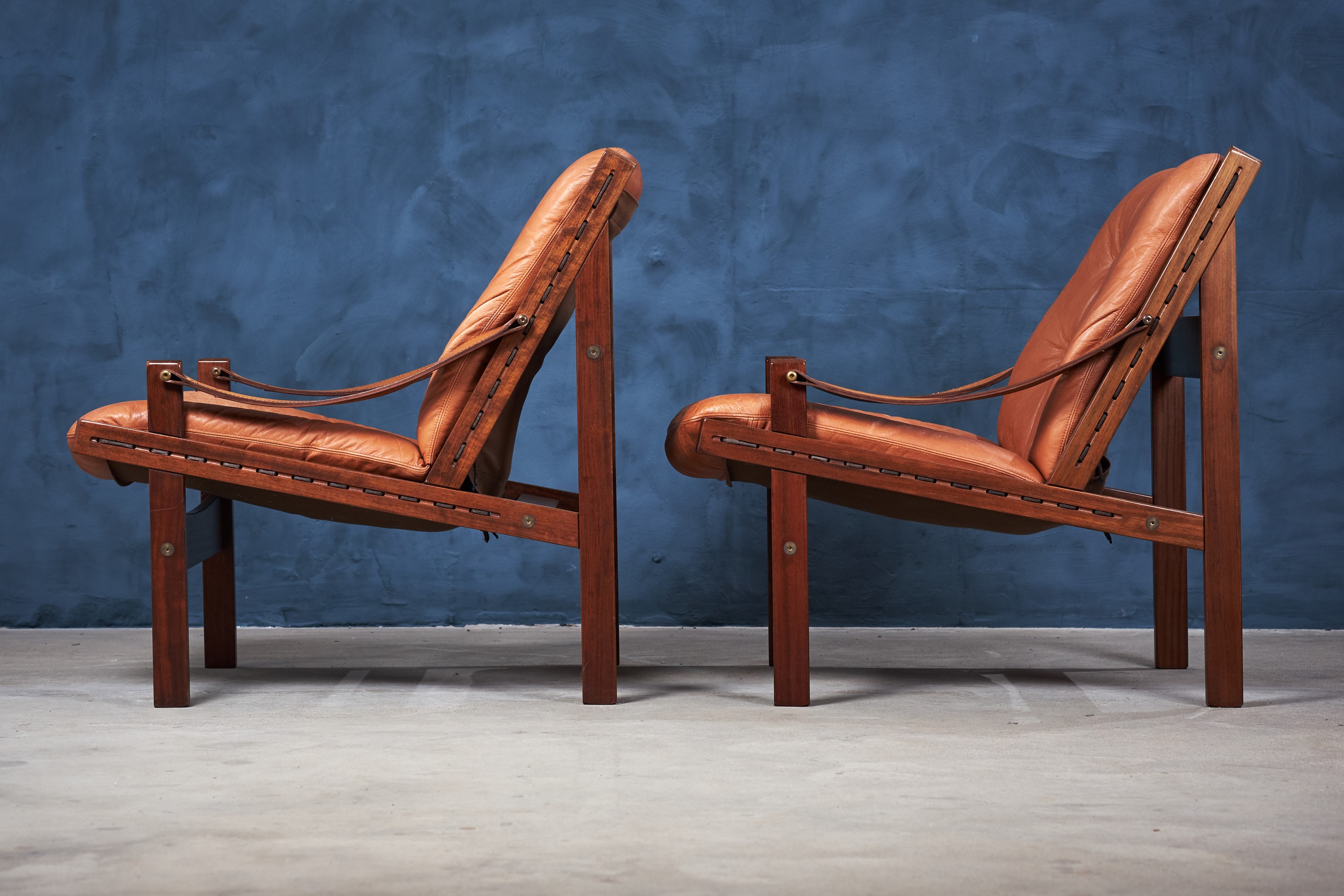 Danish Hunter Safari Chairs by Torbjørn Afdal for Bruksbo, 1950s, Set of 2