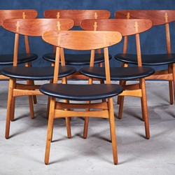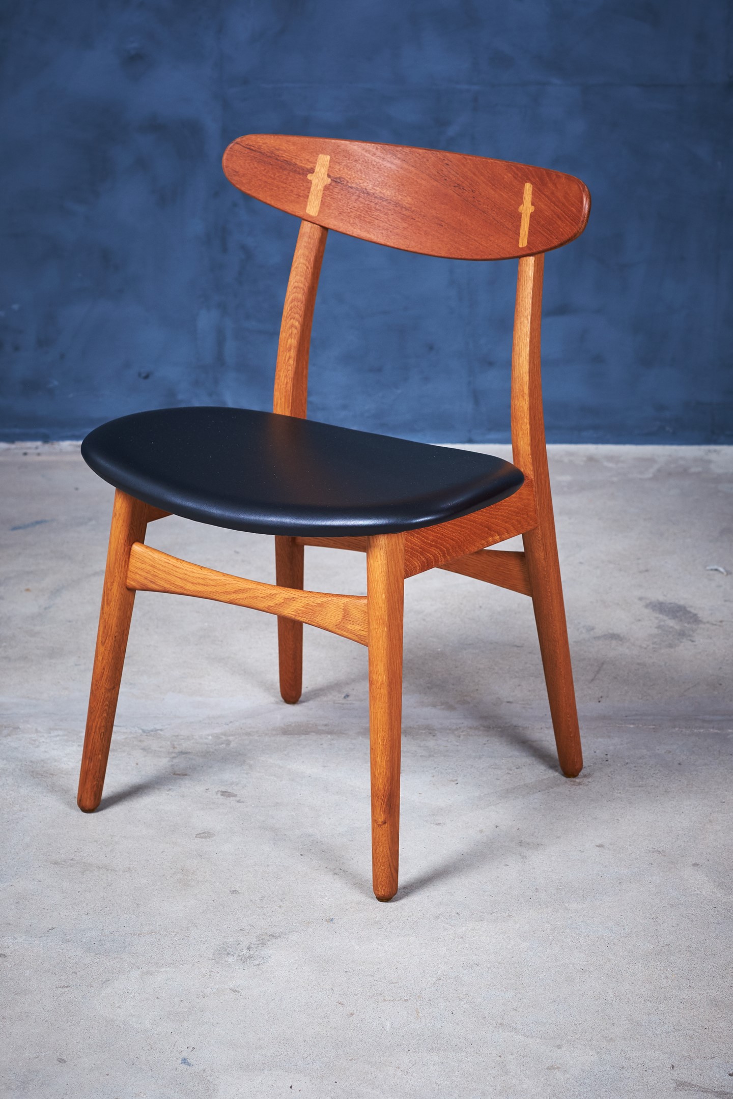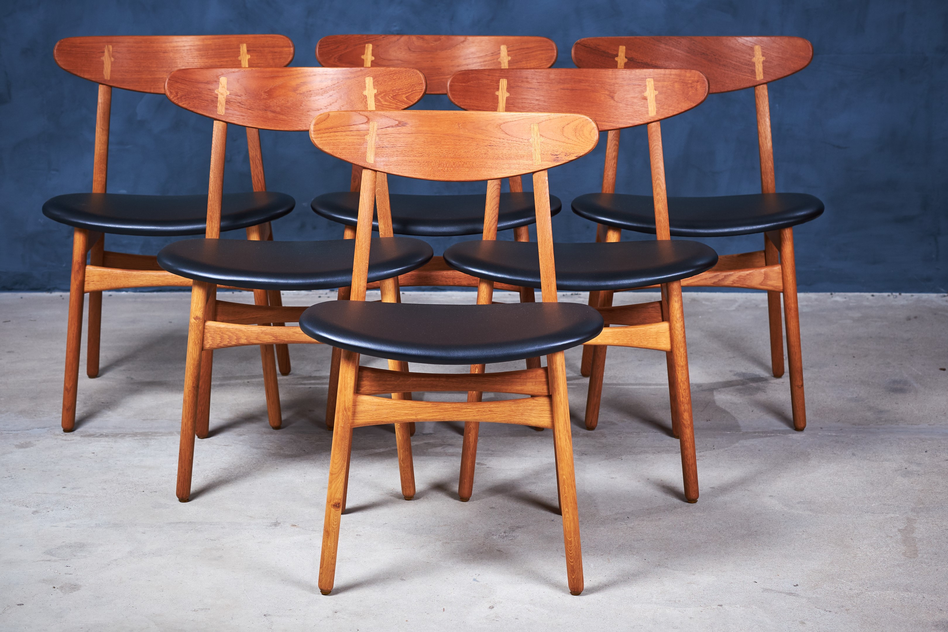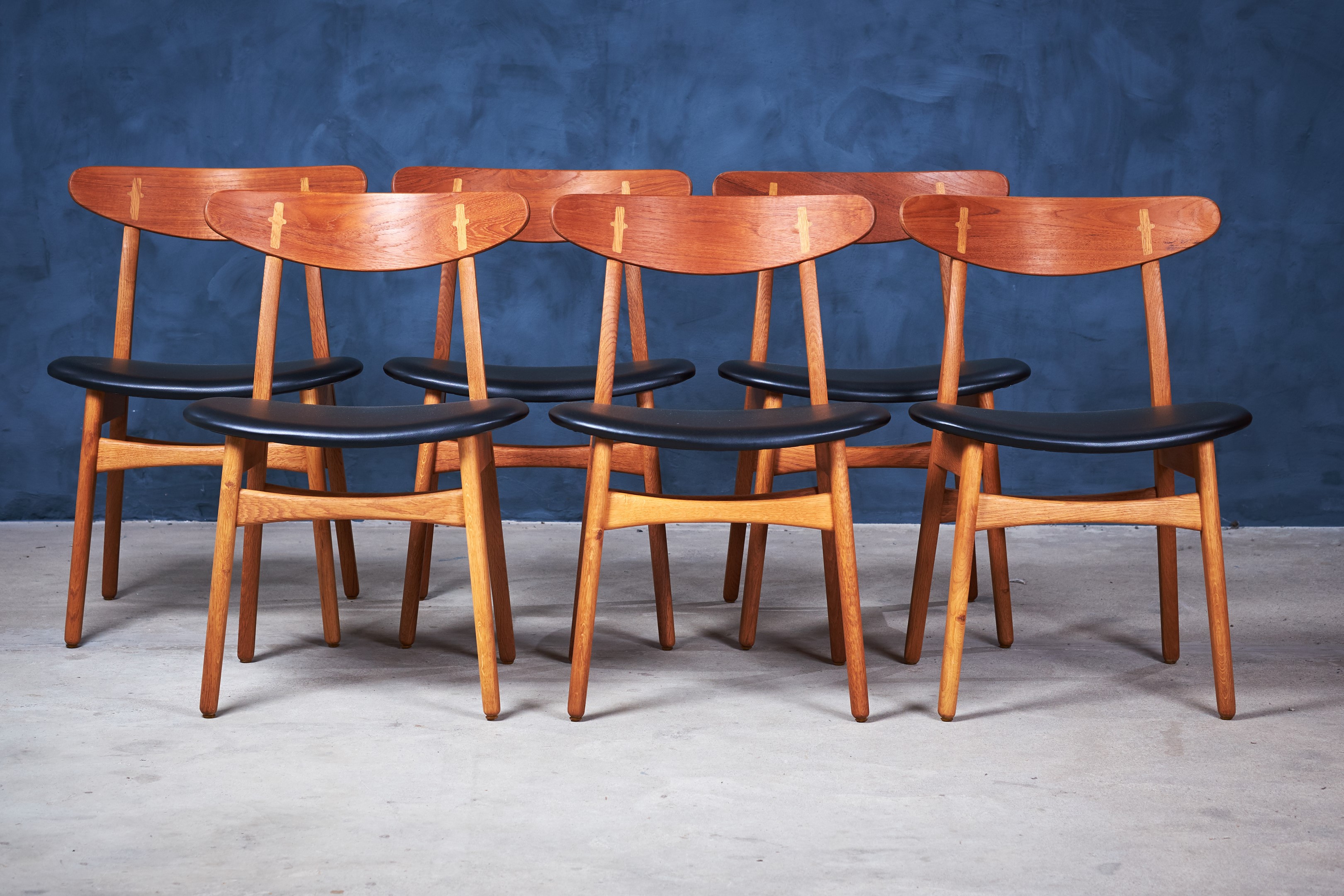 Set of 6, Dining chairs in oak and teak by Hans J. Wegner, #CH-30, 1960s, Denmark