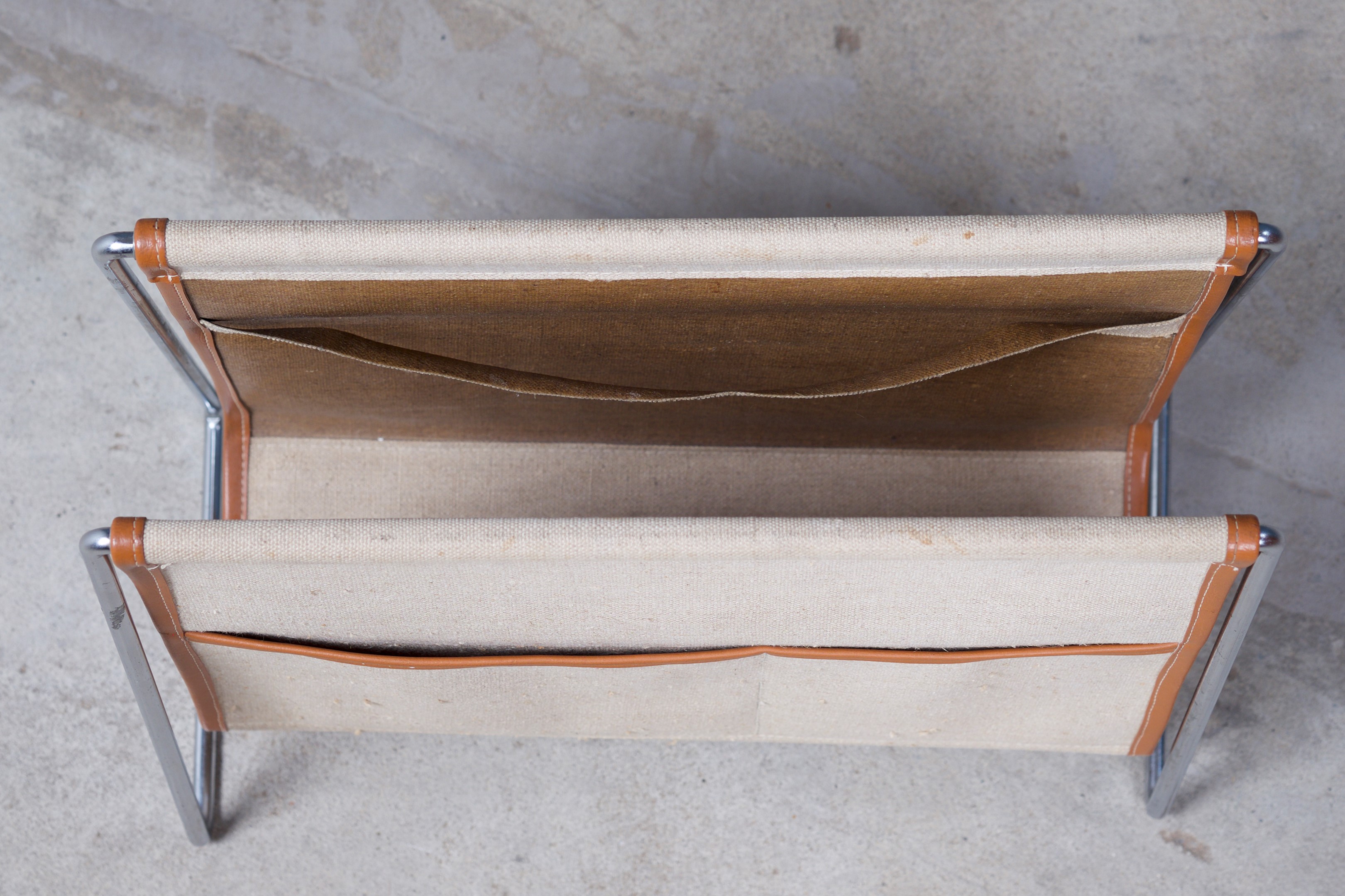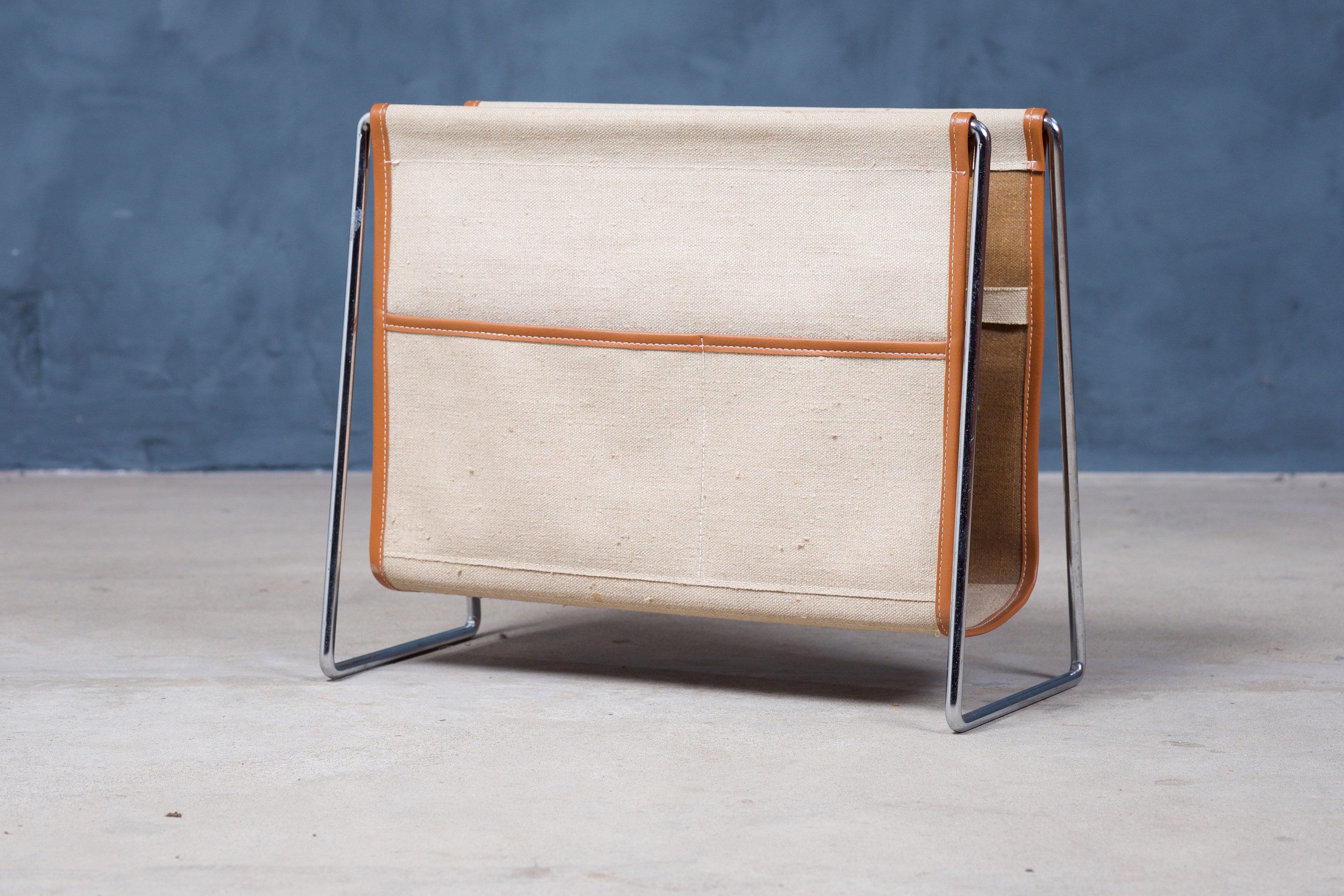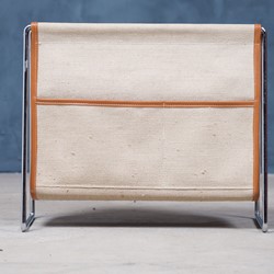 This Magazine rack was designed by Verner Panton in the mid-1950s and produced by Fritz Hansen in Denmark. It is in very good condition and would make a great addition to any modern living room.