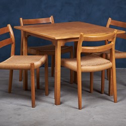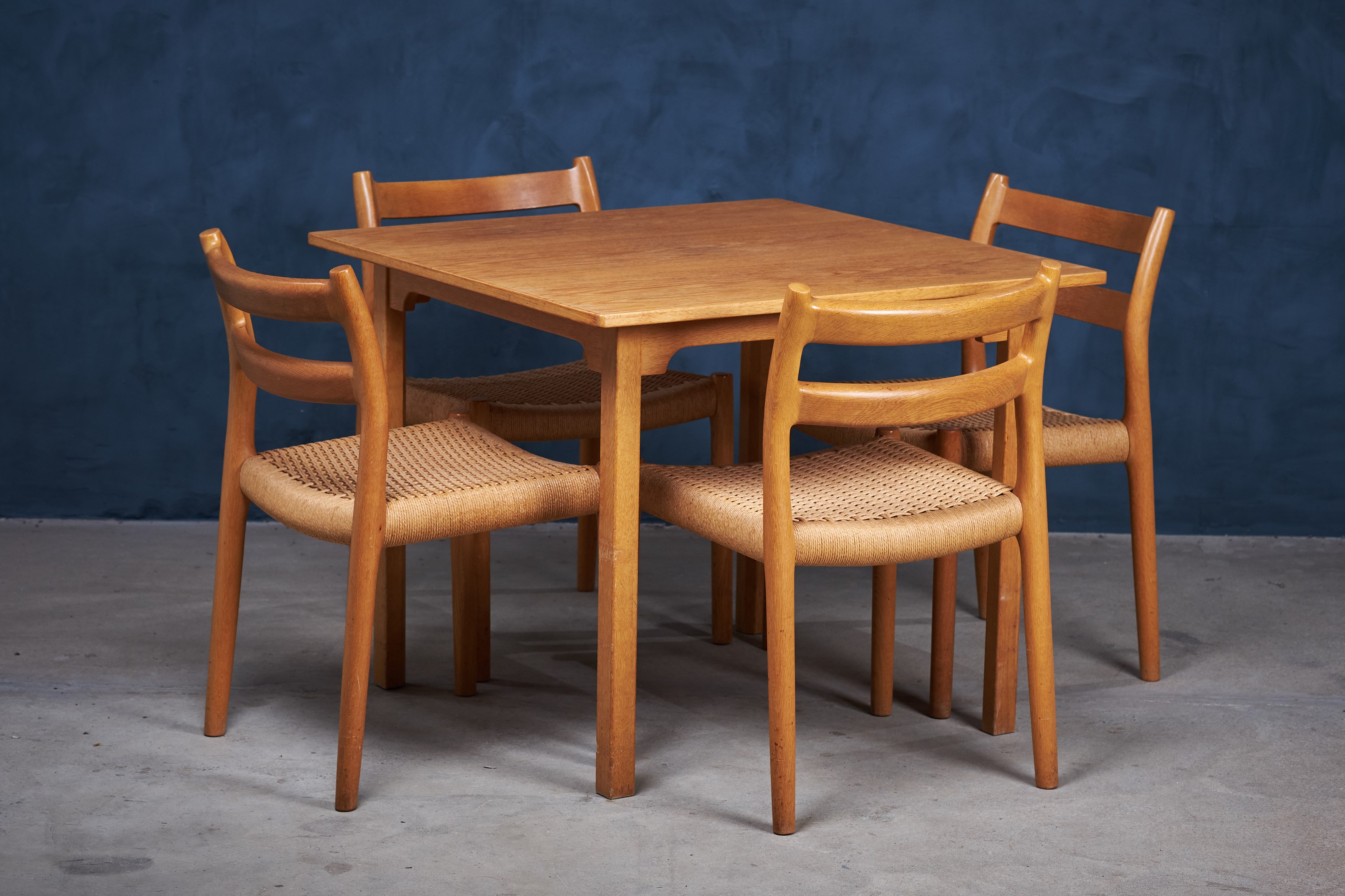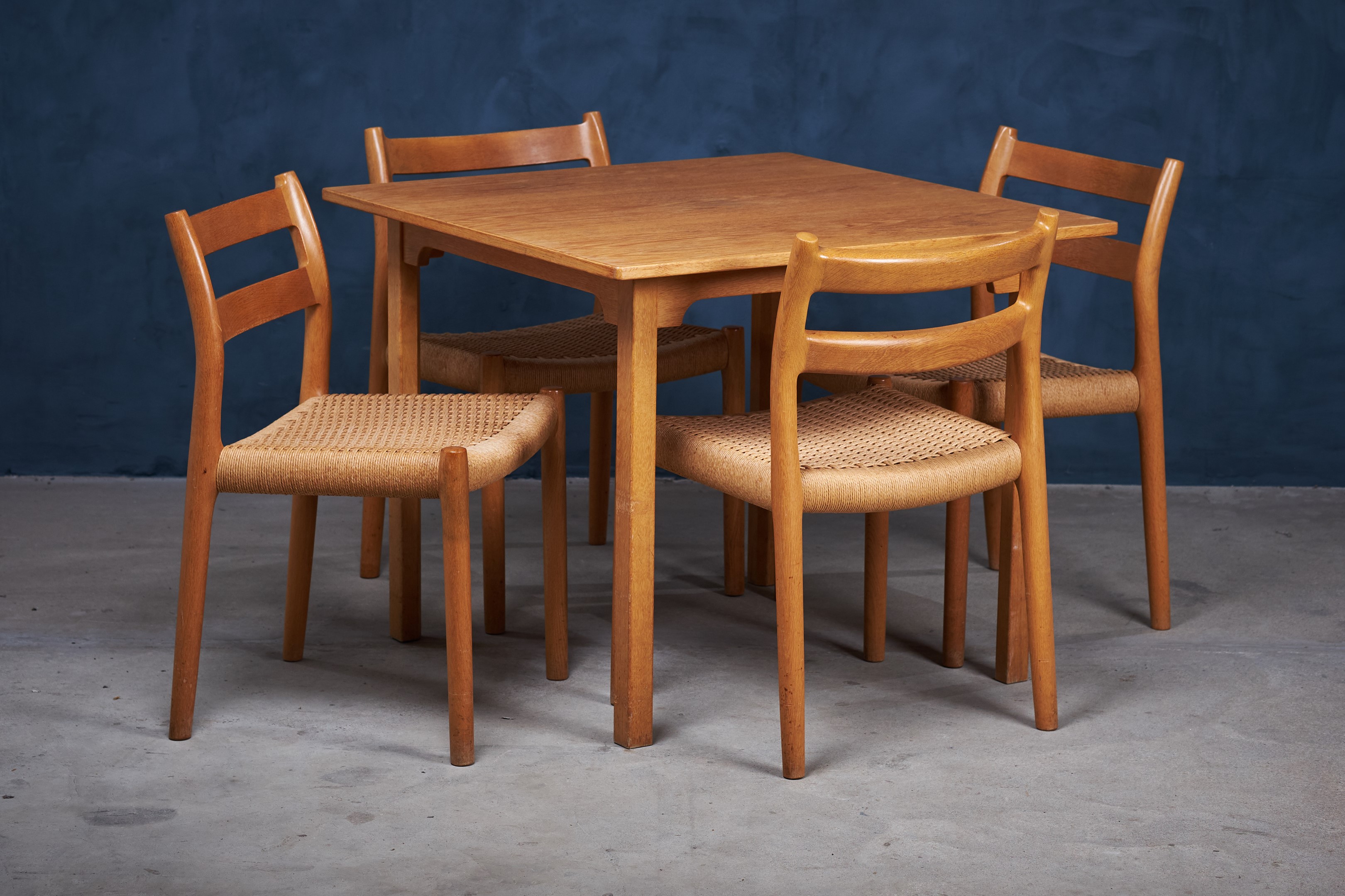 Square table in oak by Børge Mogensen for Fredericia furniture. Can be used for the small kitchen or dining room or just as a playing table. Really beautiful table in great quality produced in the 70s. The table is in great vintage condition with only few signs of age-related wear. This table would make a great addition to any modern dining environment. Only for the table, the chairs is also for sale.